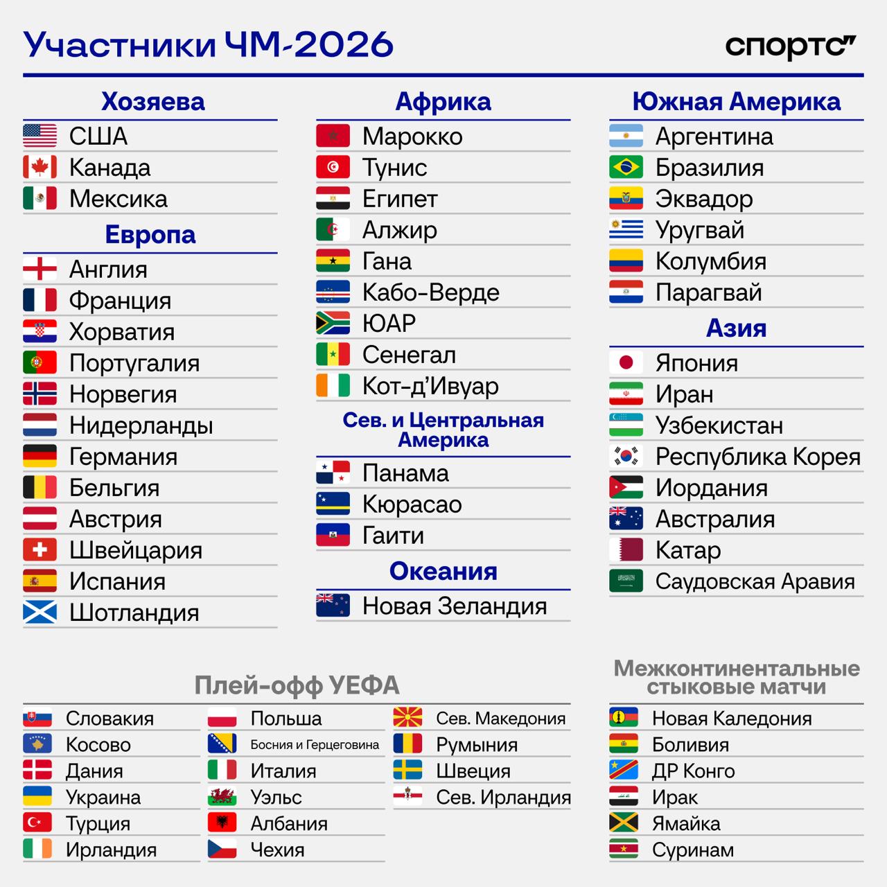 42 из 48 сборных ЧМ-2026 известны. Кто точно едет?