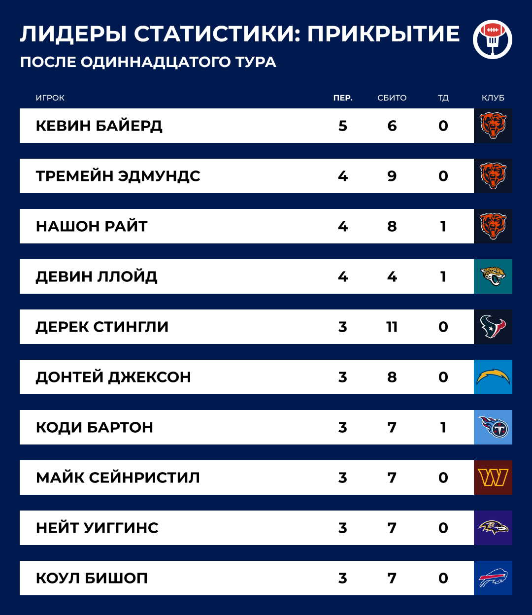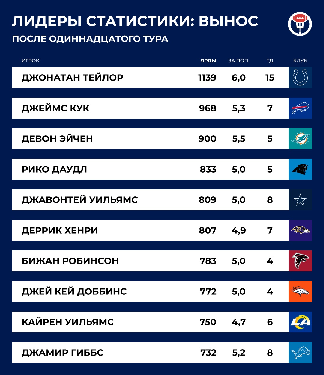 В рамках американского футбола — самой командной игры на свете — это действительно была максимально единоличная победа. Раннинбек Джеймс Кук набирал по три ярда за попытку — самый низкий показатель в сезоне. Два главных ресивера «Баффало» Калил Шакир и Кион Коулмен суммарно на двоих набрали… минус три ярда. Никто не поймал больше четырех передач, а львиная доля ярдов на приема пришлась на Тайрелла Шейверса (кого?), Гейба Дэвиса (вроде помню) и двух бегущих.
