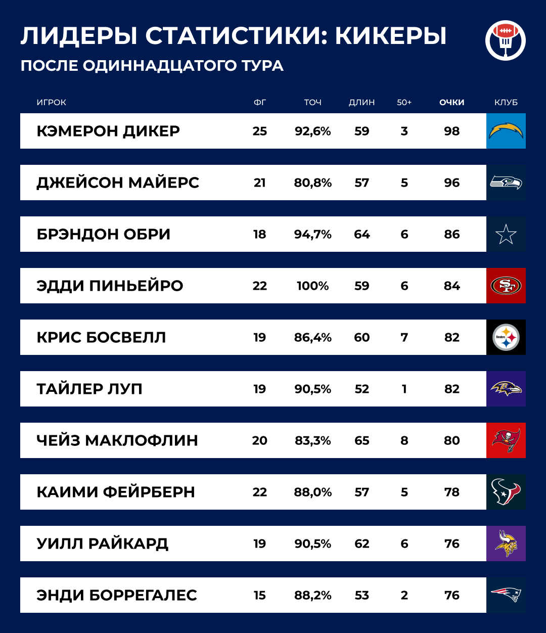 Когда кикер Уил Лац выходил пробивать филд-голы, стадион замер. В прошлом году похожий расклад в концовке матча привел к тому, что спецбригады «Чифс» заблокировали удар и победили. Но сколько бы душ Рид ни продал в прошлом, запас фортуны полностью израсходован: 11–0 в близких матчах в прошлом году, 0–5 в нынешнем.
