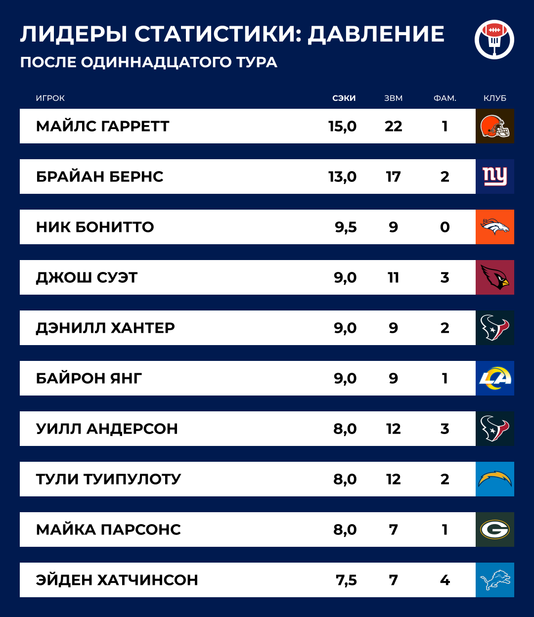 Как «Чарджерс» спасти сезон? Формально «Чарджерс» участвуют в гонке за плей-офф, но с такой игрой линии нападения сложно воспринимать их всерьез. Это исторически плохой о-лайн. В этом сезоне Херберт столкнулся с 82 быстрыми давлениями (у следующего в той же категории квотербека — 62) и 40 незаблокированными давлениями (то есть, когда защитника просто никто не взял, у следующего квотербека — 33).
