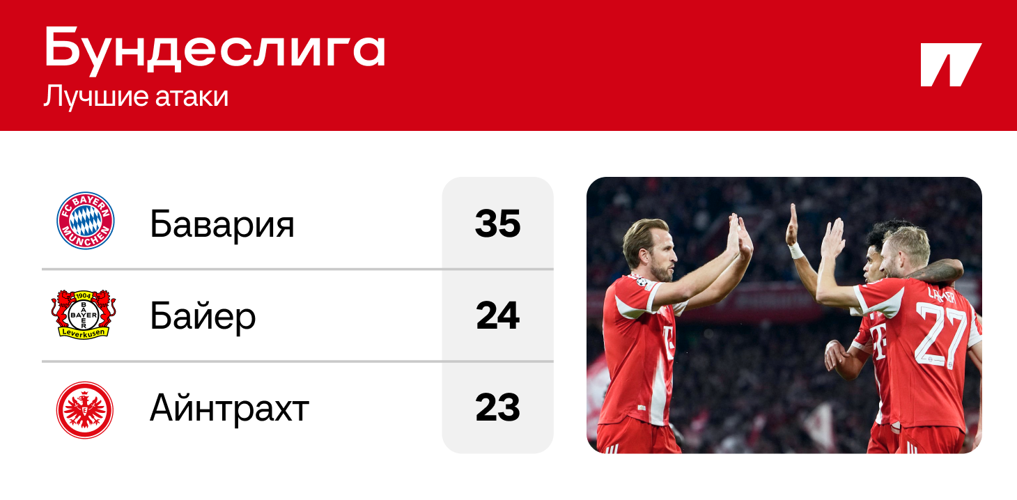 Как было год назад: «Бавария» бушевала и тогда после десяти туров – с 33 голами, «Айнтрахт» отставал на семь, «Байер» – на 12. В общем, та же тройка, что и сейчас.