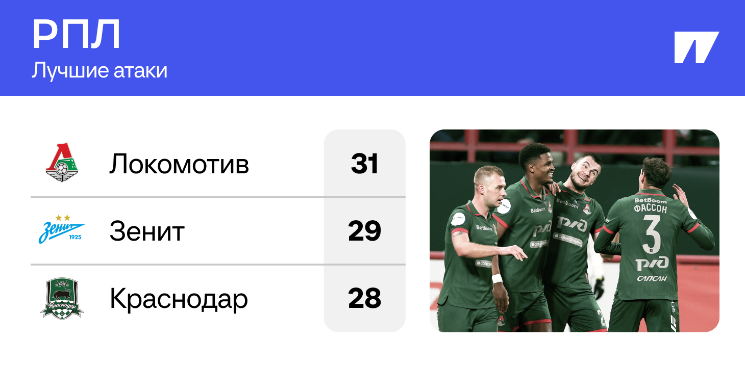 Как было год назад: тройка после 15 туров выглядела так – «Зенит» (33), «Краснодар» (32), «Динамо» (31). У «Локомотива» было 30 мячей.