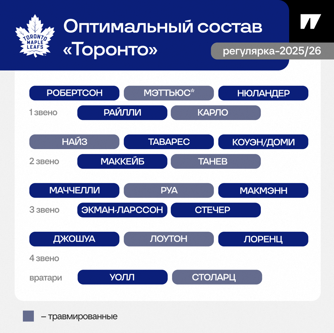 Но ситуация «Торонто» от этого проще не становится. В матче с «Сент-Луисом» из-за разных повреждений отсутствовали семь игроков основы «Лифс»!