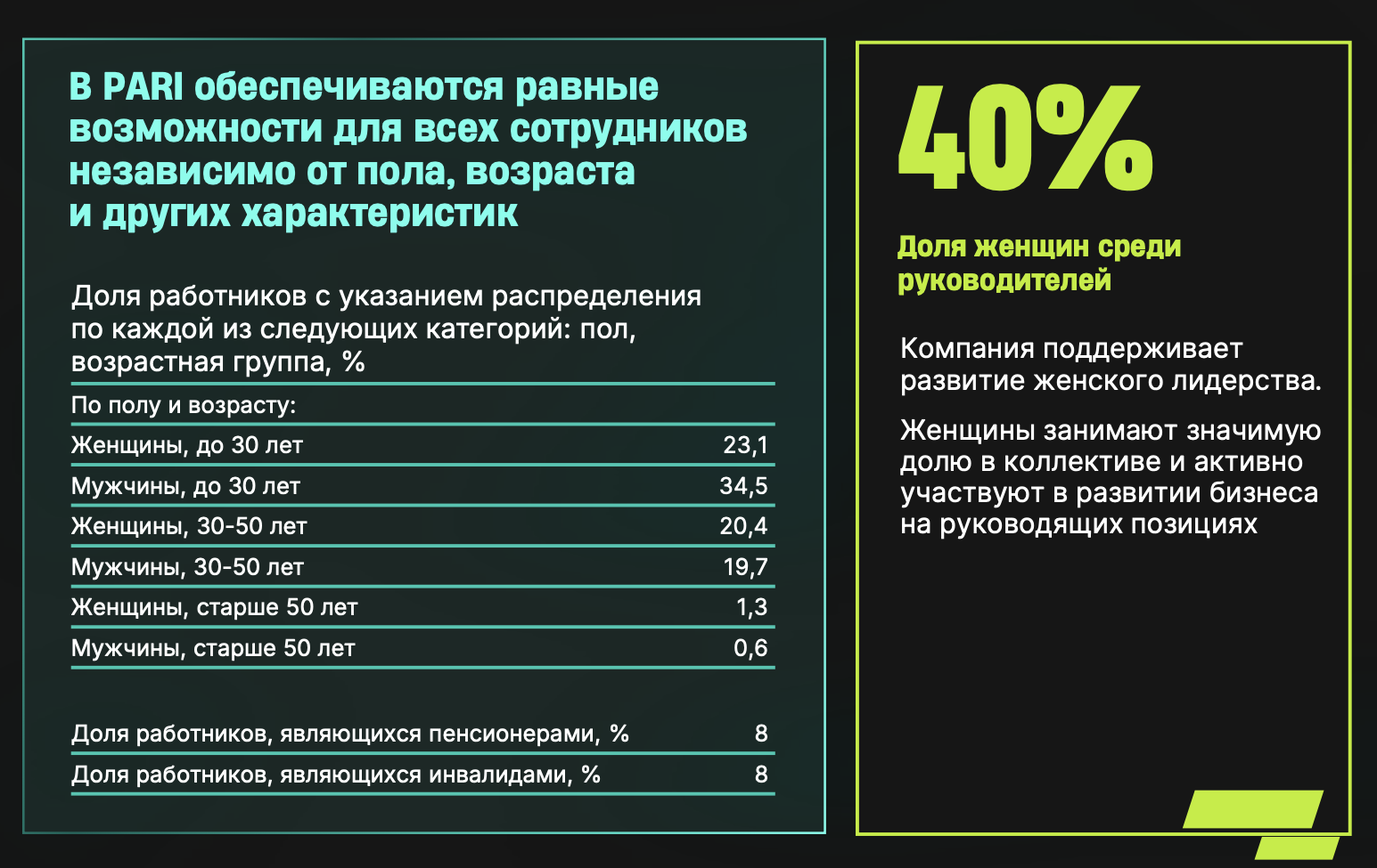 В PARI отметили, что делают упор на равные возможности для всех сотрудников независимо от пола, возраста и других характеристик.