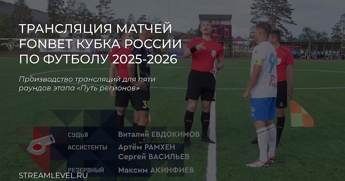С августа по октябрь 2025 проходил этап FONBET Кубка России по футболу — «Путь регионов». Всего 6 раундов, в 5 из которых нам удалось организовать трансляции для заказчиков, которые в конечном итоге транслировались на «Матч ТВ» или «Матч Премьер», в ресурсы спортивного интернет-портала Sportbox и в приложение FONBET.
