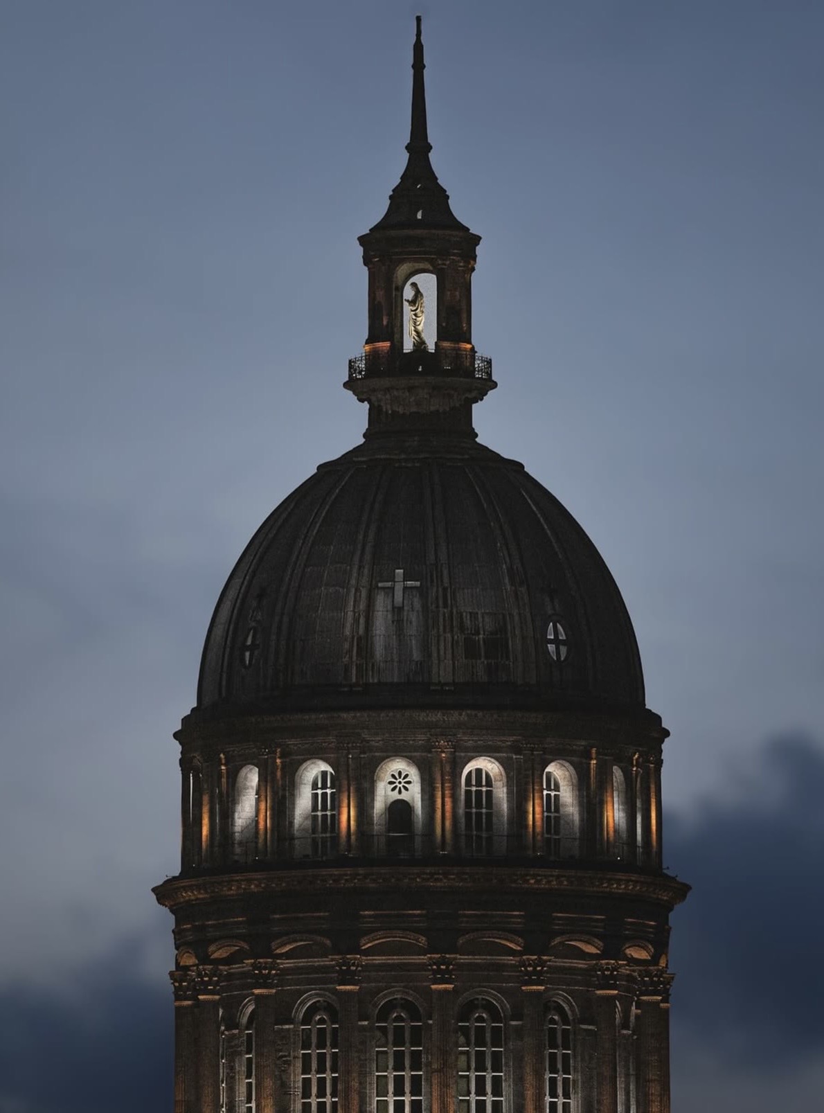 За дальними воротами, словно мальчишка заглядывающий через забор, виднеется 100-метровый купол базиликаты Нотр-Дам де Булонь-сюр-Мер, который доминирует в городском пейзаже.