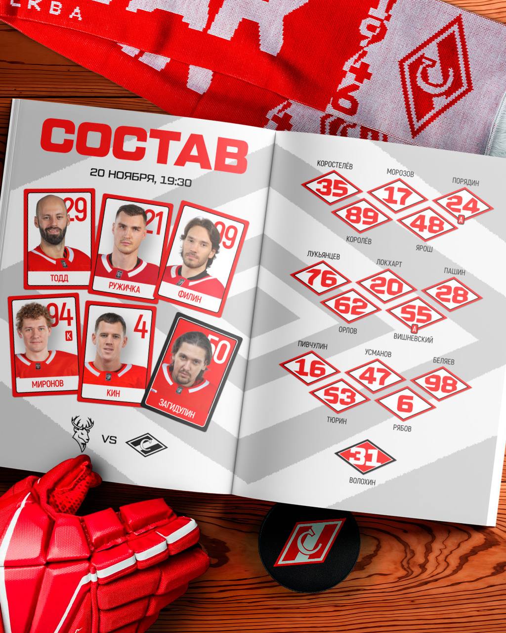 Состав спартаковцев на сегодняшнюю игру!