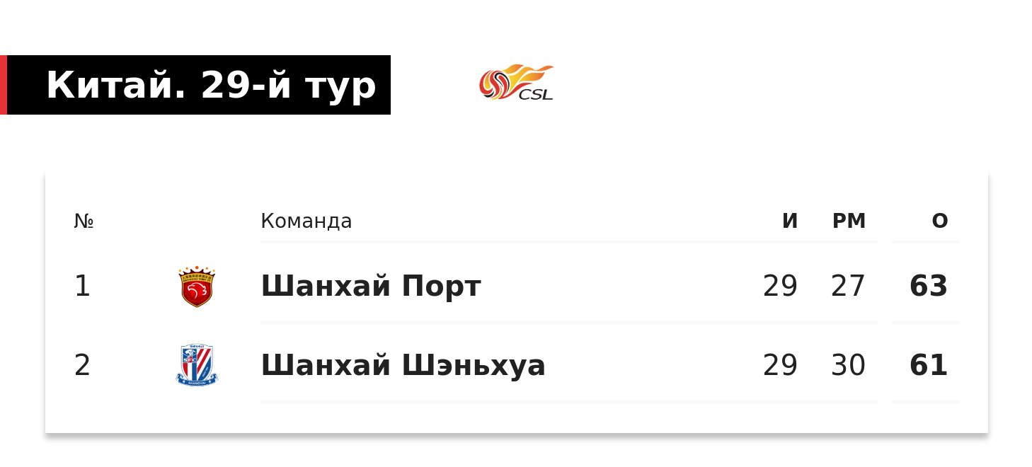 В субботу развязка сезона в Суперлиге Китая на Спортсе’’ – в 10:30 мск смотрим матчи последнего тура.