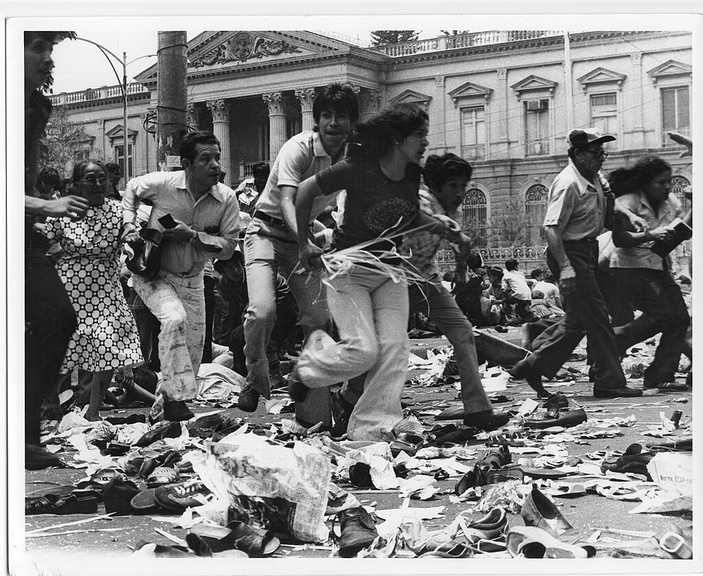 30 марта 1980, Сан-Сальвадор. Паника во время торжественных похорон архиепископа Ромеро, когда по многотысячной толпе скорбящих был открыт огонь. В хаосе, под взрывами бомб и стрельбой, погибло 40 человек и около 200 получили ранения.