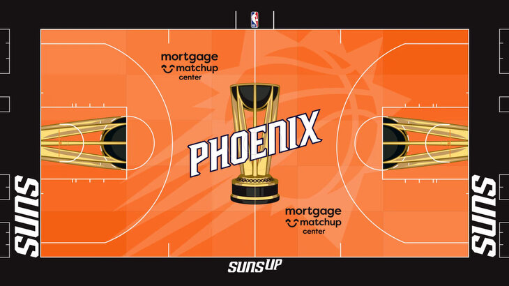 Из хорошего можно отметить, что в сравнении с тем же «Вашингтоном» здесь логотип удалось вписать в масштабы корта практически полностью. К тому же для самых въедливых есть пояснялка в виде надписи «Suns Up» («Солнце встает»), чтобы не возникало вопросов касательно возникновения мяча и его дальнейшей судьбы.