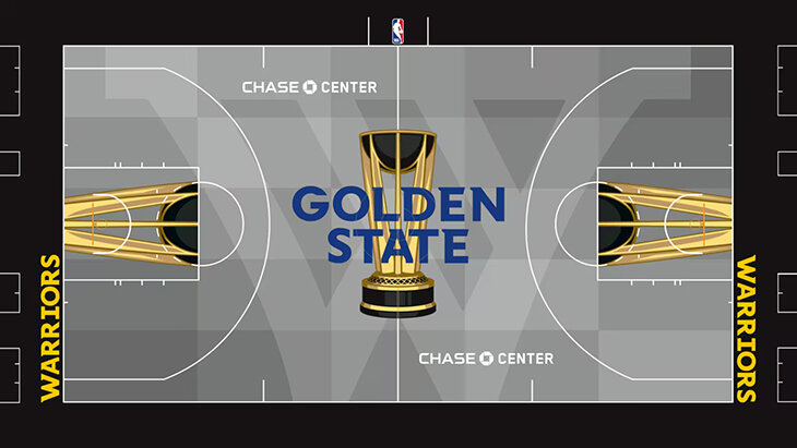 Ваша команда называется «Воины ЗОЛОТОГО штата», основной цвет выездной формы – синий, а лого имеет несколько узнаваемых ретро вариаций (с мостом Золотые Ворота, например), но вы при этом выкрашиваете корт в погребальные серо-черные цвета и располагаете на заднике одинокую букву «W». Если бы подобное решение было обусловлено цветовой гаммой клуба – одно дело, но у «Уорриорз» в этом отношении пространства для творчества гораздо больше, чем у «Бруклина».