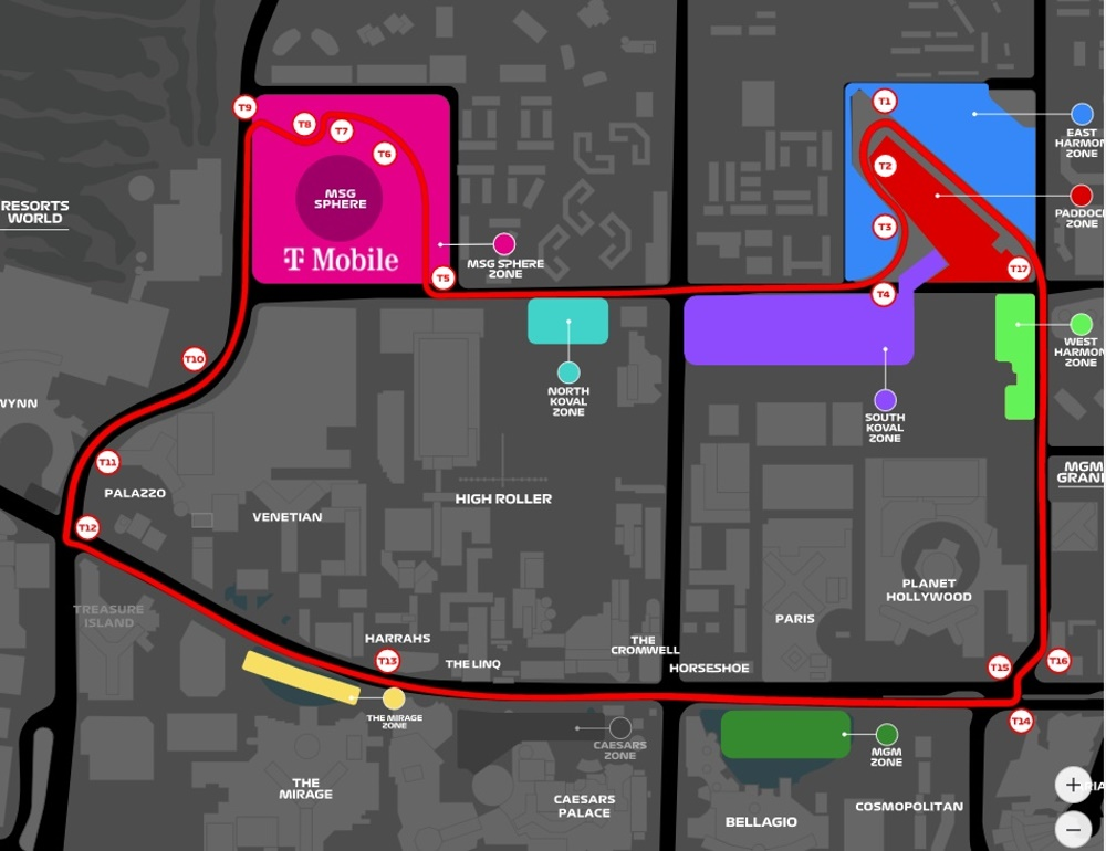 Вот как выглядит расположение зданий с видом на гоночный трек Гран-при Лас-Вегаса.