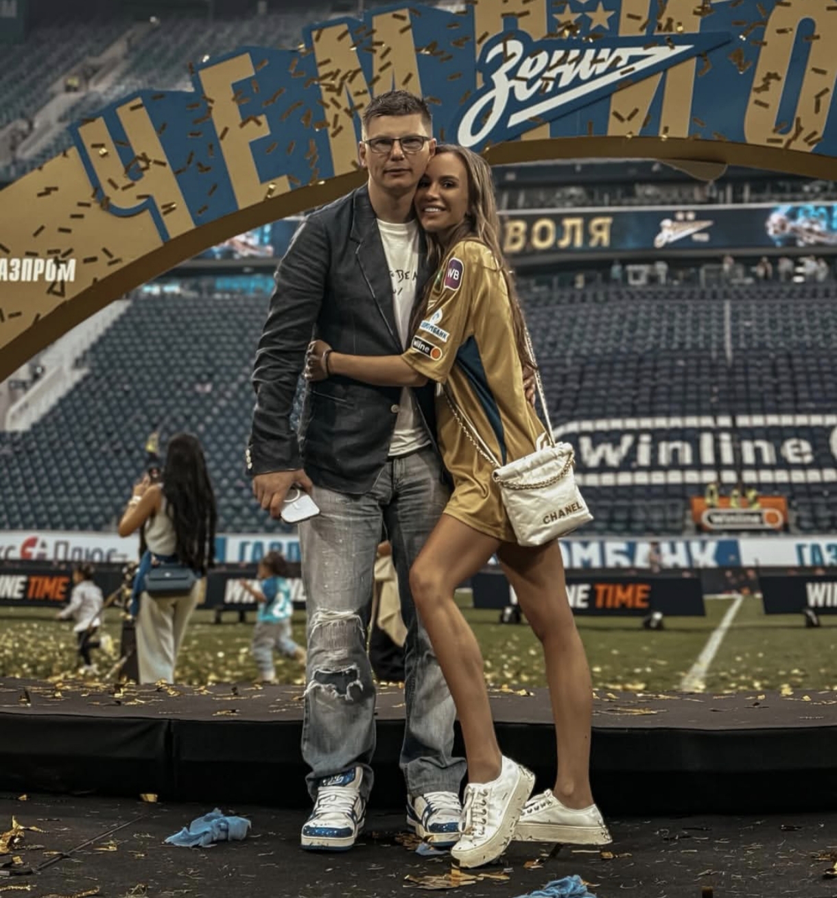 А впервые на публике Анна и Андрей появились также на футболе. В конце мая 2024 года «Зенит» драматично вырвал золотые медали у «Краснодара» и «Динамо», и Аршавин фоткался на золотом подиуме вместе с новой возлюбленной. «Мое особенное чемпионство. Люблю», – написала девушка в тот самый день.