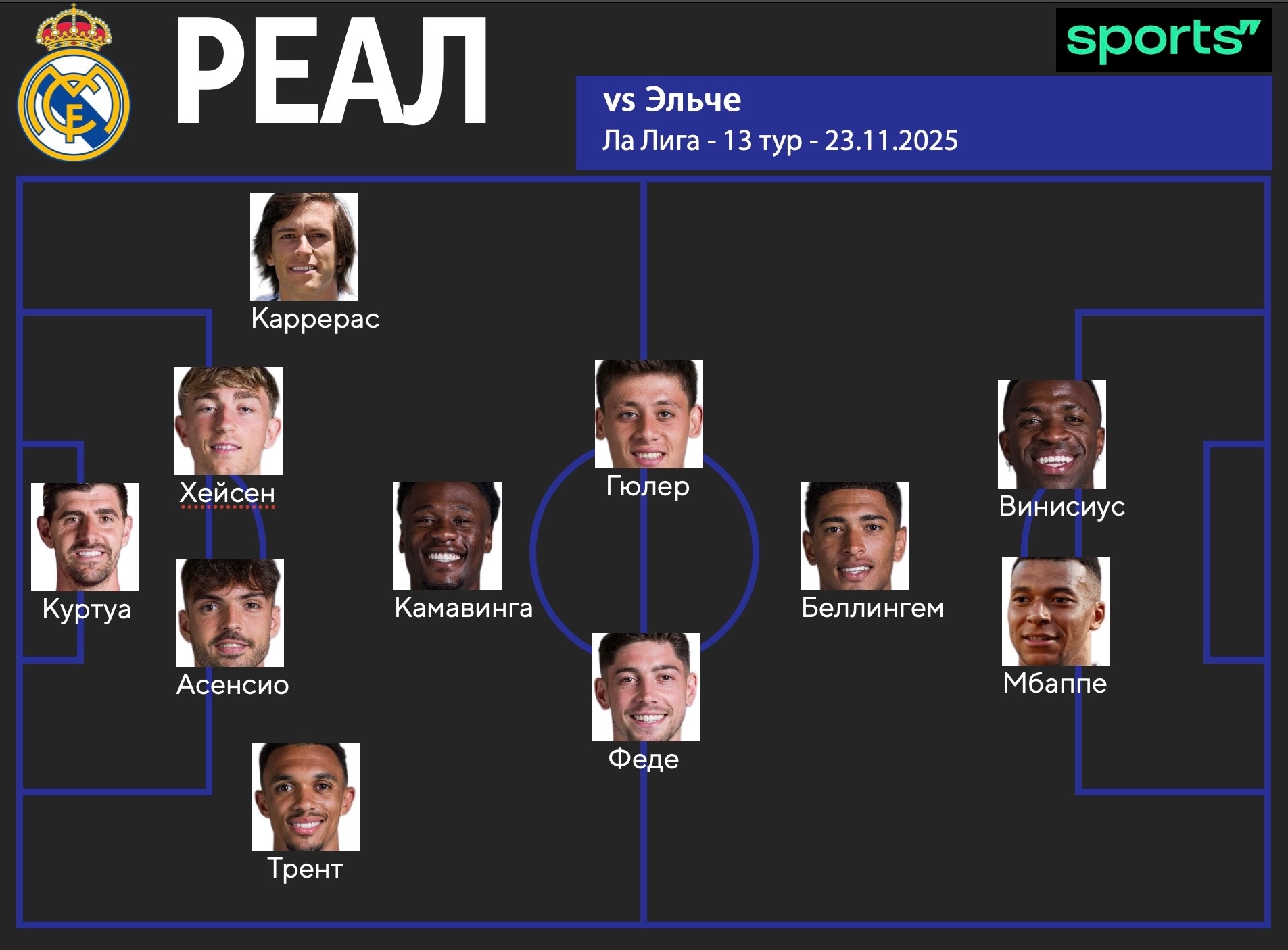 У Мбаппе, Хейсена и Камавинги были легкие повреждения, но сейчас все в порядке – они доступны на матч с «Эльче». Вальверде и Куртуа не ездили в сборные и тоже успели восстановиться. Тчуамени не попал в заявку, но уже тренируется в общей группе – тренерский штаб просто не решил не рисковать с ранним возвращением француза.