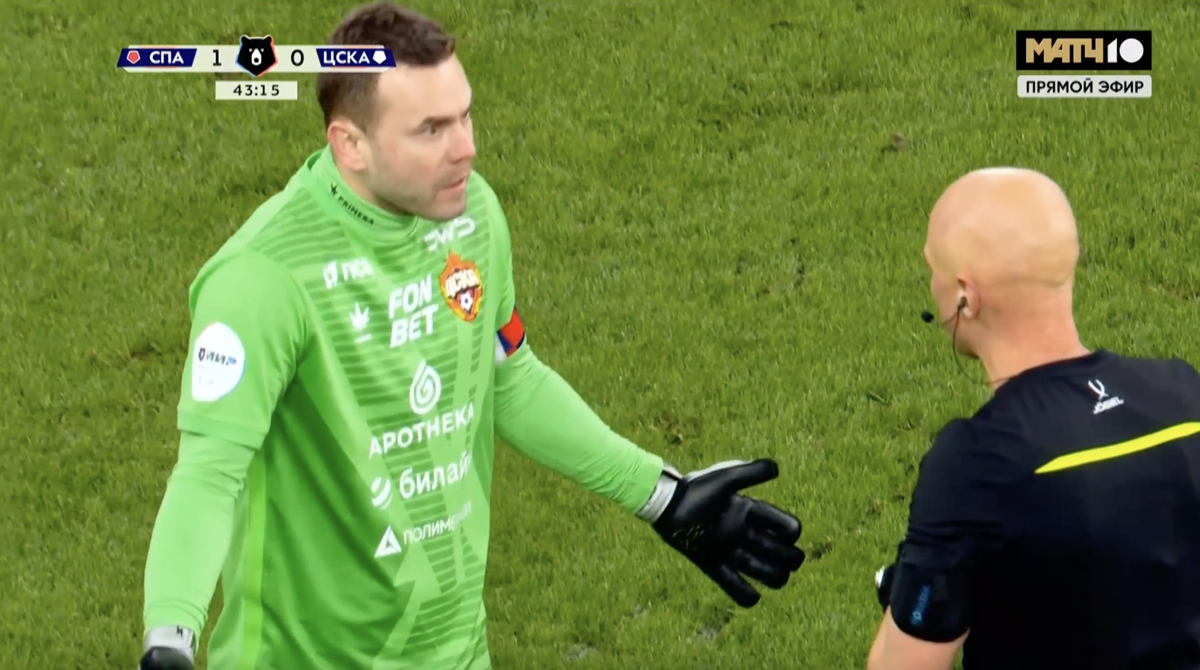 Еще и вернувшийся после травмы Игорь Акинфеев злился, спорил с Сергеем Карасевым: считал, что на нем сфолили, хотел отмены.