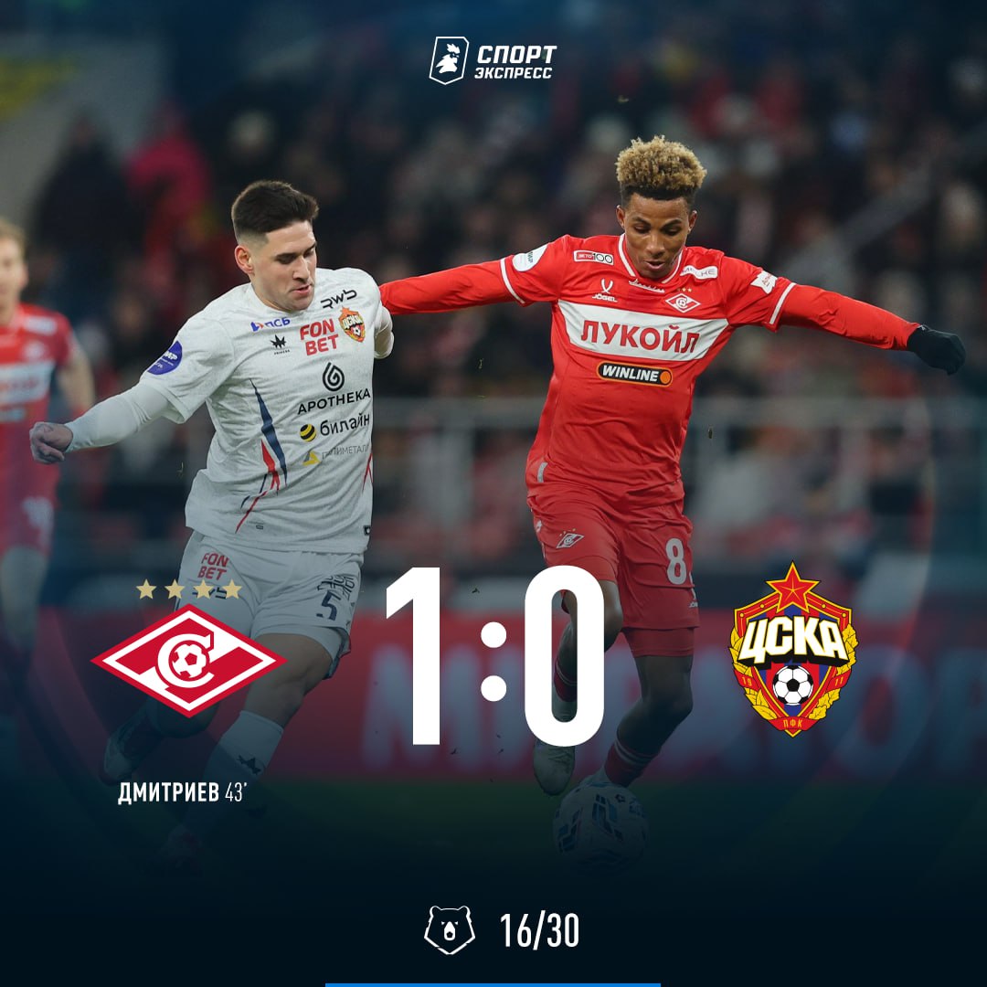 «Спартак» на своем поле победил ЦСКА в матче 16-го тура РПЛ — 1:0.