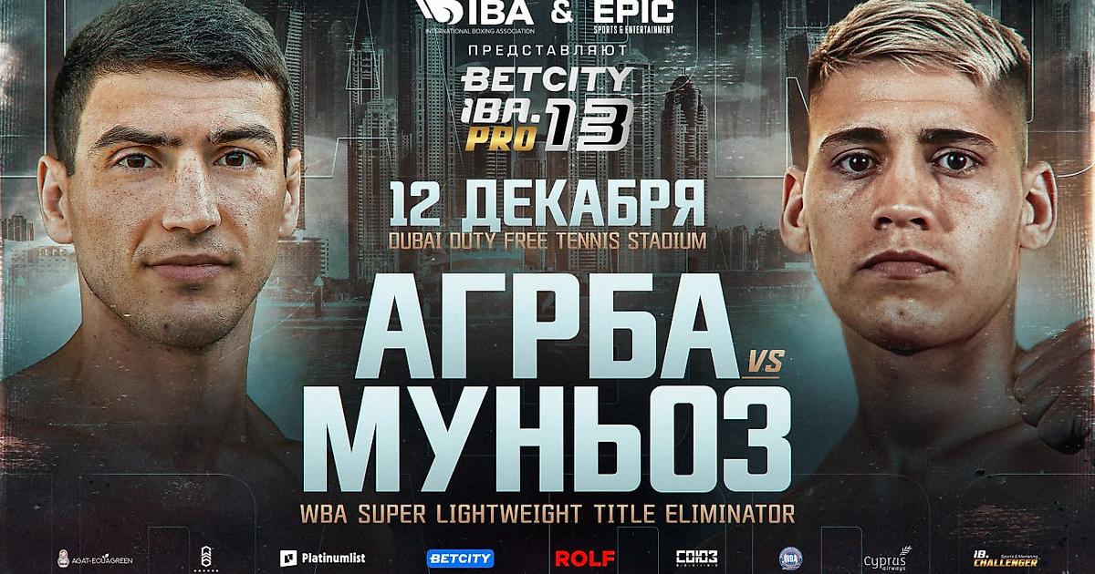 Российский боксёр Харитон Агрба (16-1, КО 9) из команды RCC Boxing Promotions 12 декабря в Дубае проведёт реванш с аргентинцем Рубеном Муньозом (18-2, КО 14). Этот 12-раундовый поединок за звание обязательного претендента по версии WBA в первом полусреднем весе пройдёт в рамках главного карда турнира «BETCITY IBA.PRO 13».