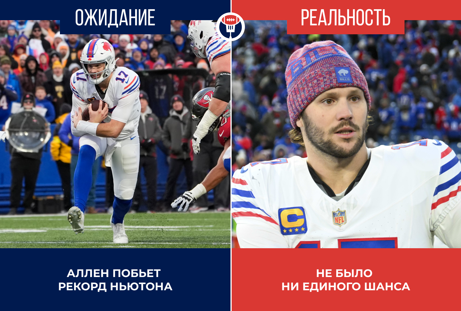 В ред-зоун хозяев поля «Биллс» зашли всего дважды и оба раза безуспешно. На выносе Аллен действовал осторожнее обычного (пять попыток на 20 ярдов). Возможно, свою роль сыграл эпизод в конце первой четверти, когда квотербеку во время скрэмбла жестко прилетело сзади, и он всем весом приземлился на левую руку. Джош не пропустил в итоге ни единого снэпа, но прыти поубавилось. Тренерскими ли увещеваниями или собственной чуйкой, не так важно.