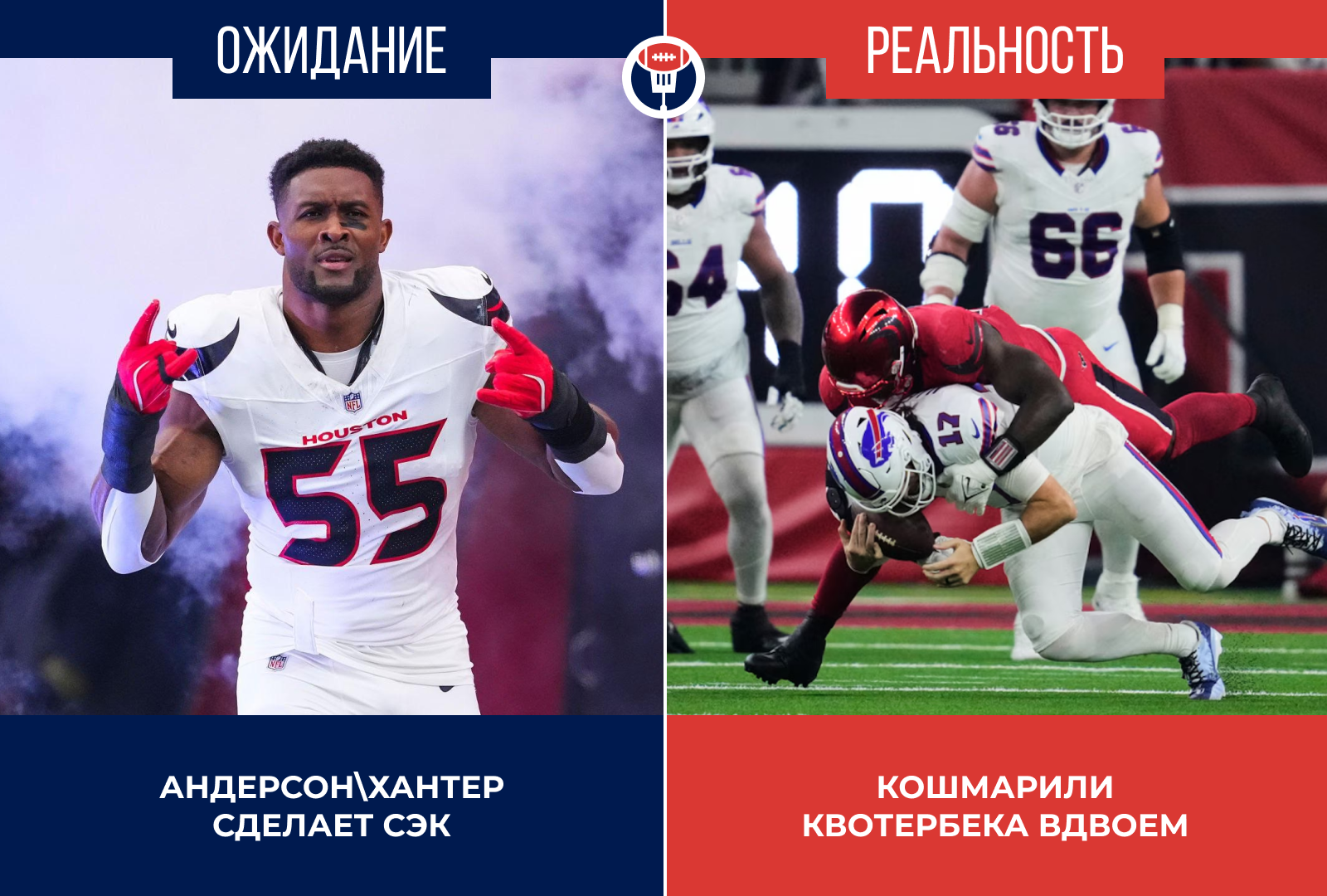 Для «Тексанс» это напротив лучший показатель в сезоне. Особенно постарался Уилл Андерсон, буквально прописавшийся в бэкфилде соперника: девять давлений, два с половиной сэка, два захвата с потерей ярдов. Был момент, когда Андерсон пробежал суммарно 52 ярда, но достал-таки спасавшегося бегством Аллена. От судьбы, как говорится…