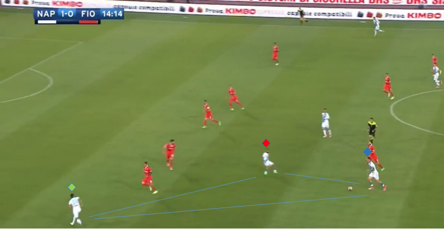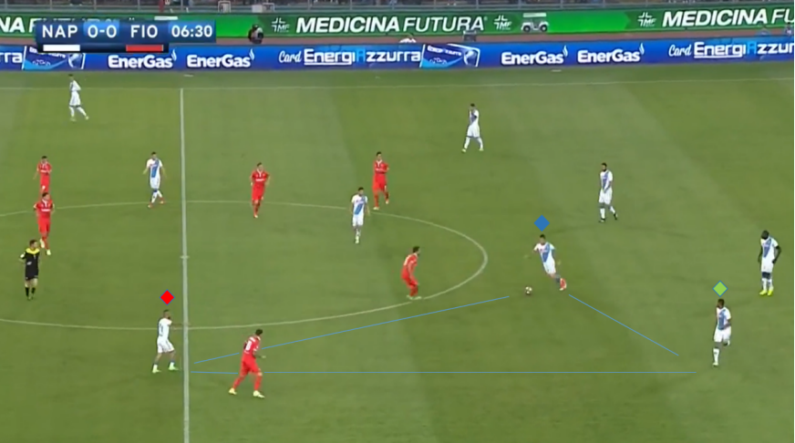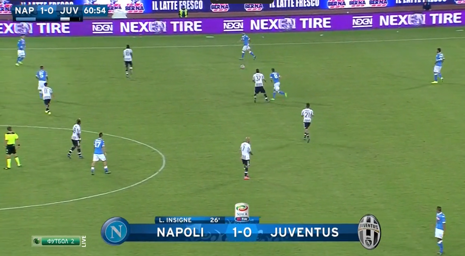 Инсинье тогда выбил свои лучшие цифры. Тут совсем просто. Изолированный на левом фланге футболист выбил 18+9 за игровой год, благодаря своим скорости и технике. Важнее то, что многим он запомнился как самый яркий игрок того состава. Неудивительно, что его хотел «Ливерпуль». Передачи Гамшика из глубины и их движение с Мертенсом - главные факторы успеха итальянца. Сам Инсинье, получая мяч, смещался в центр под обострение, генерируя подключения Гуляма слева.