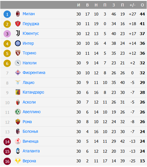 Кстати, если вы когда-нибудь мечтали увидеть непобежденную команду, не ставшую чемпионом, то загляните в таблицу Серии А за сезон 1978/1979.