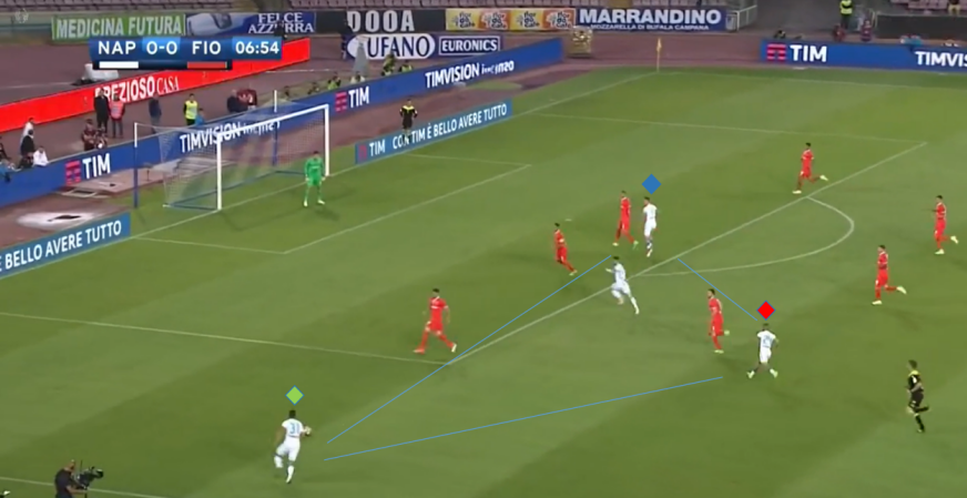 В одиночку с таким объемом не справился бы даже бронзовый призер ЗМ-2021 и Игрок Года от UEFA-2021. «Тут очень помогают треугольники, над которыми Сарри работает, возможно, лучше всех в мире. Стажировавшийся у Сарри в «Эмполи» тренер Фабрицио Пиккарета рассказывал: «Сарри внушает игрокам принцип владения, при котором они должны думать «вертикально», прежде чем рассматривать другие варианты. Это не значит, что они должны запускать мяч вперед без адреса. Лишь то, что, удерживая мяч «горизонтальными» передачами, они должны открывать поле для вертикальных пасов. Для этого «Эмполи» создает несколько линий и треугольники».