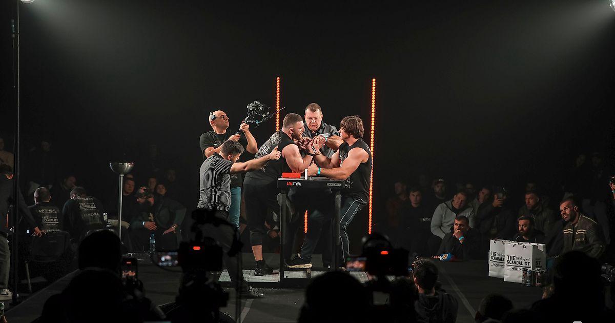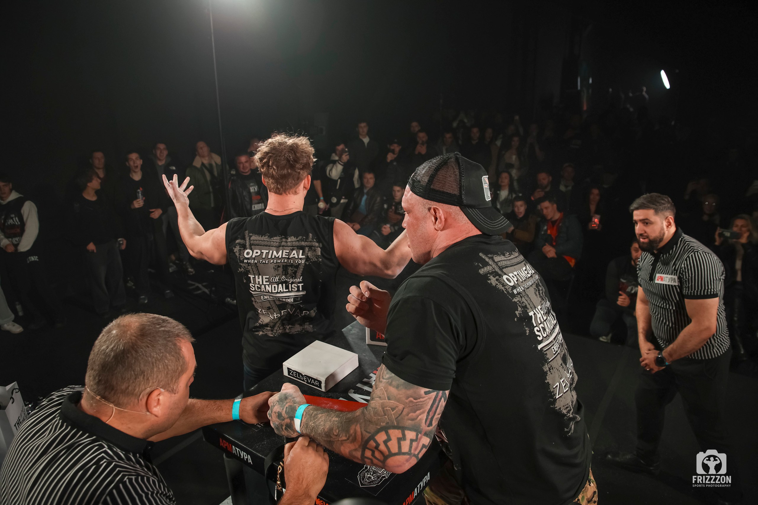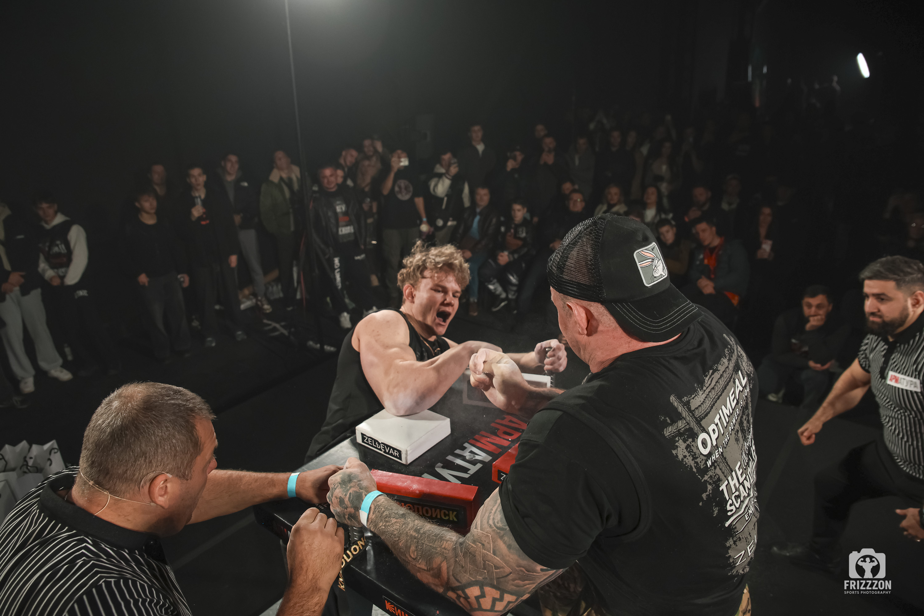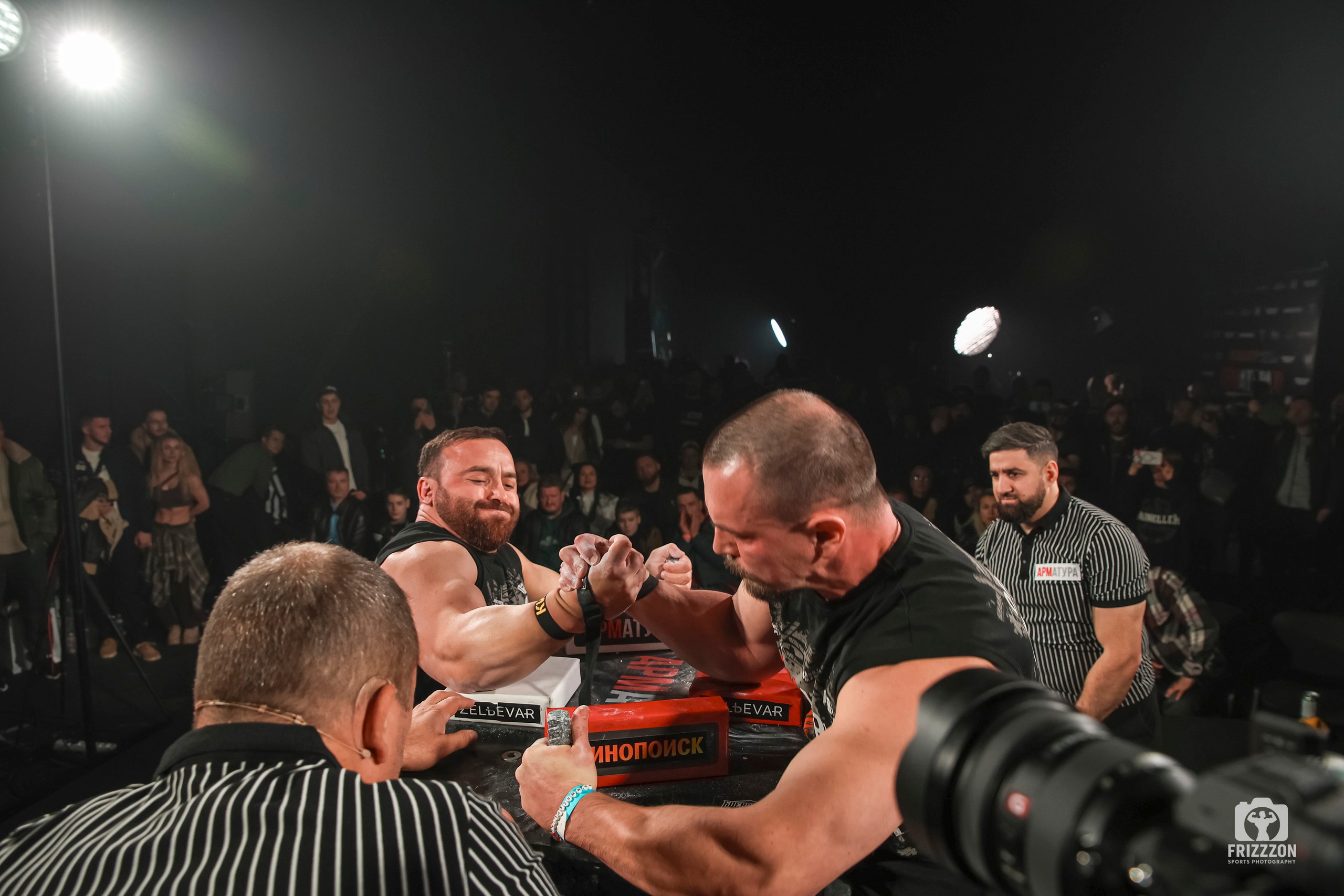 В главном армфайте вечера Роман Филиппов в напряжённом бою победил чемпиона АМС Зураба Тавберидзе. Было несколько моментов, где грузинский рукоборец мог переломить ход противостояния, но, как говорится, не срослось. «У меня сейчас открытие фитнес-зала. А потом дайте мне несколько месяцев, и я готов взять у Романа реванш», — заявил сразу после армфайта грузинский атлет.