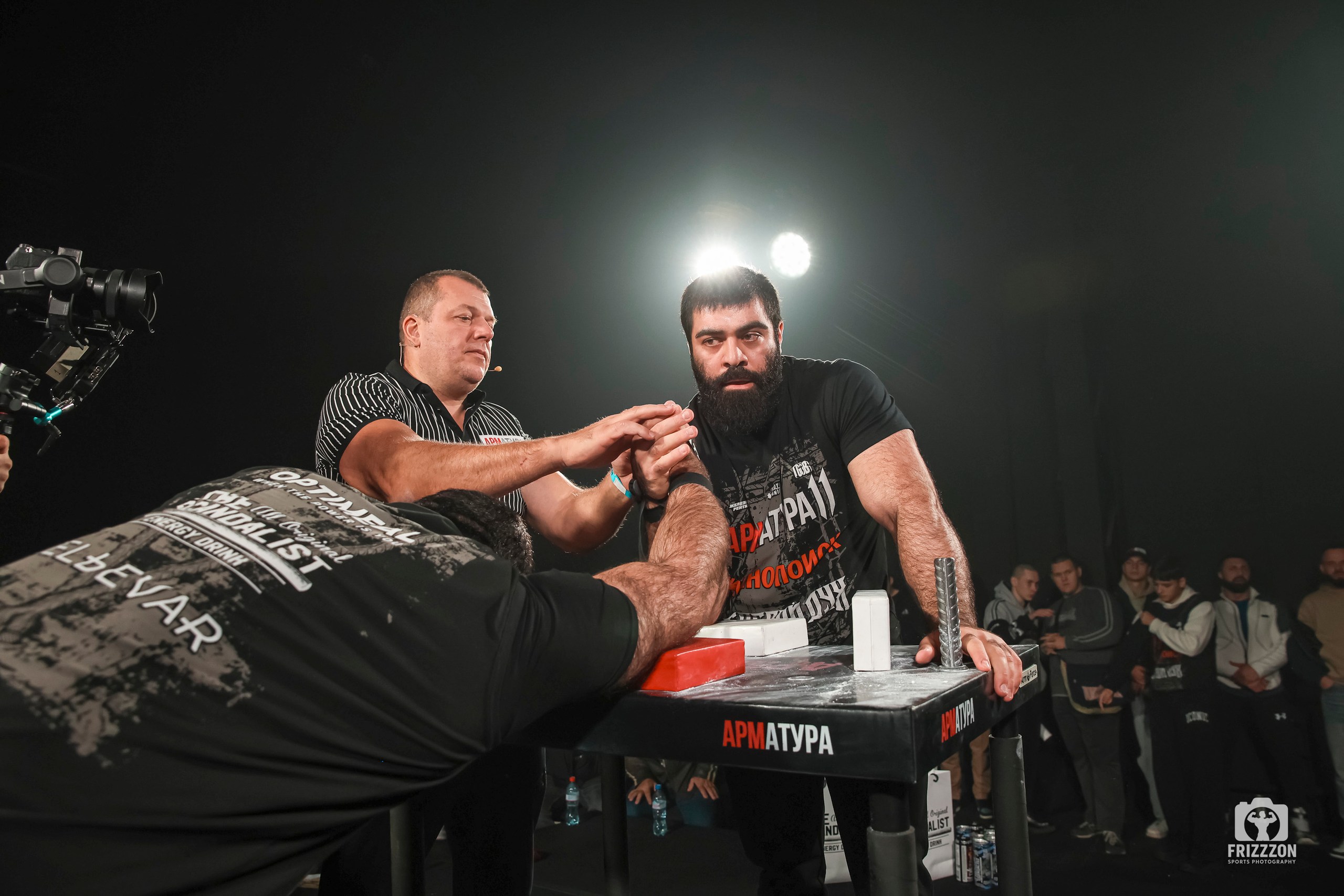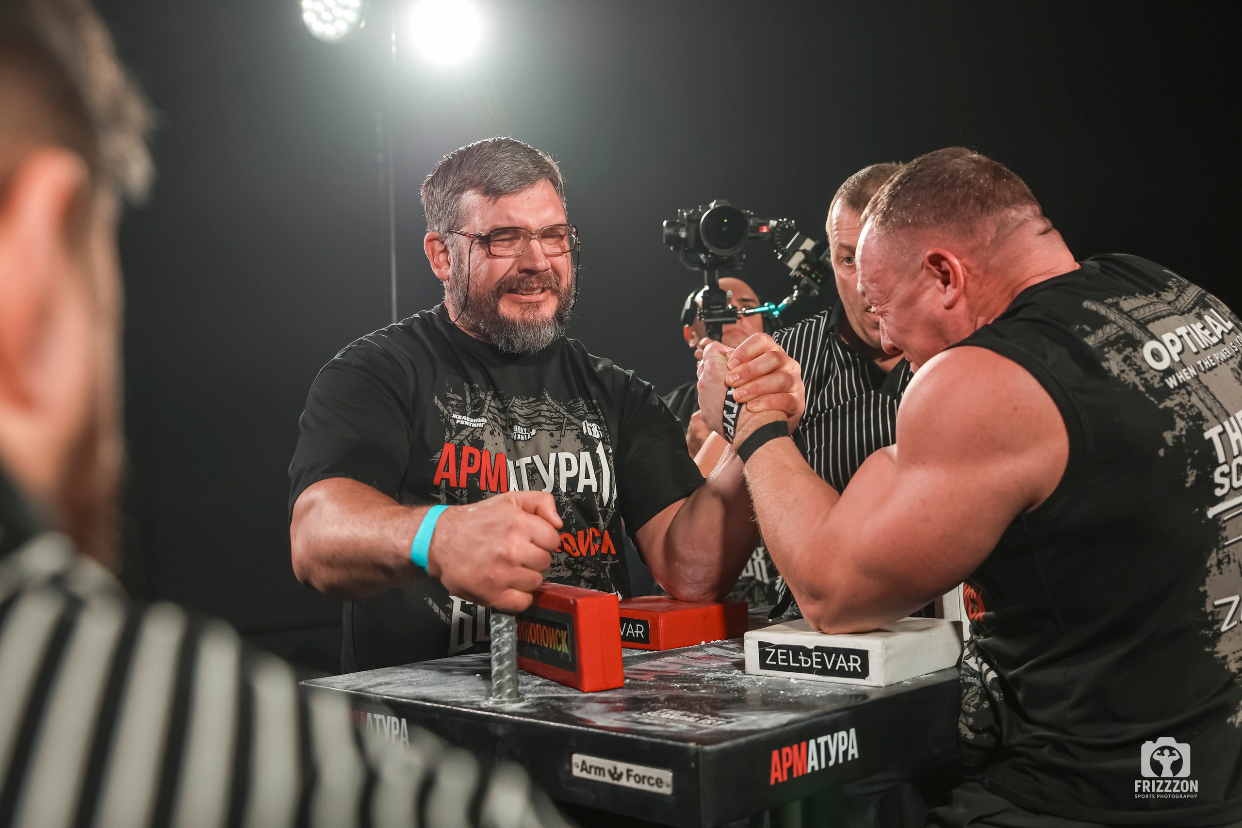 Но давайте кратко пройдёмся по всем главным армфайтам. Отари Таварткиладзе в очень близком поединке взял верх над чемпионом АМС Виктором Шевеленко. И эта победа говорит о высоком уровне грузинского рукоборца! Букмекеры ставили на победу более титулованного российского атлет.