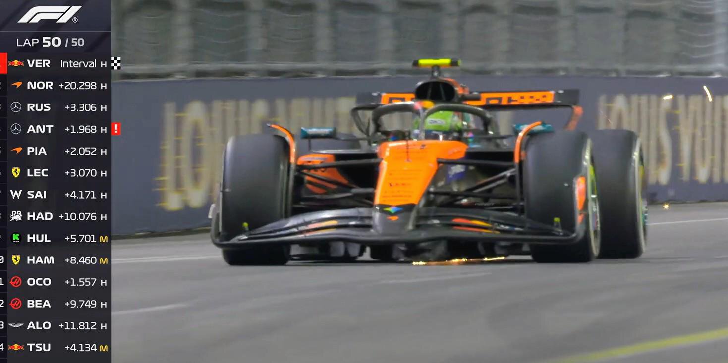 Посмотрите, как искрила машина Норриса на заключительном круге.