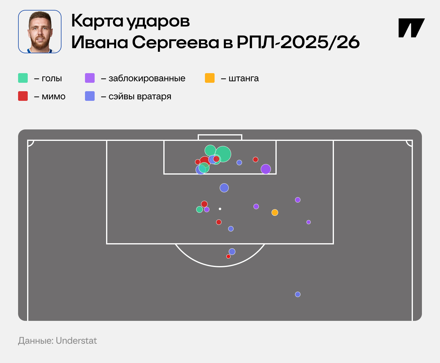 Теперь еще проще. Иван – один из лучших форвардов РПЛ во вратарской (4 из 5 голов в РПЛ-2025/26 забил именно оттуда). Но сейчас мажет даже из любимой зоны.
