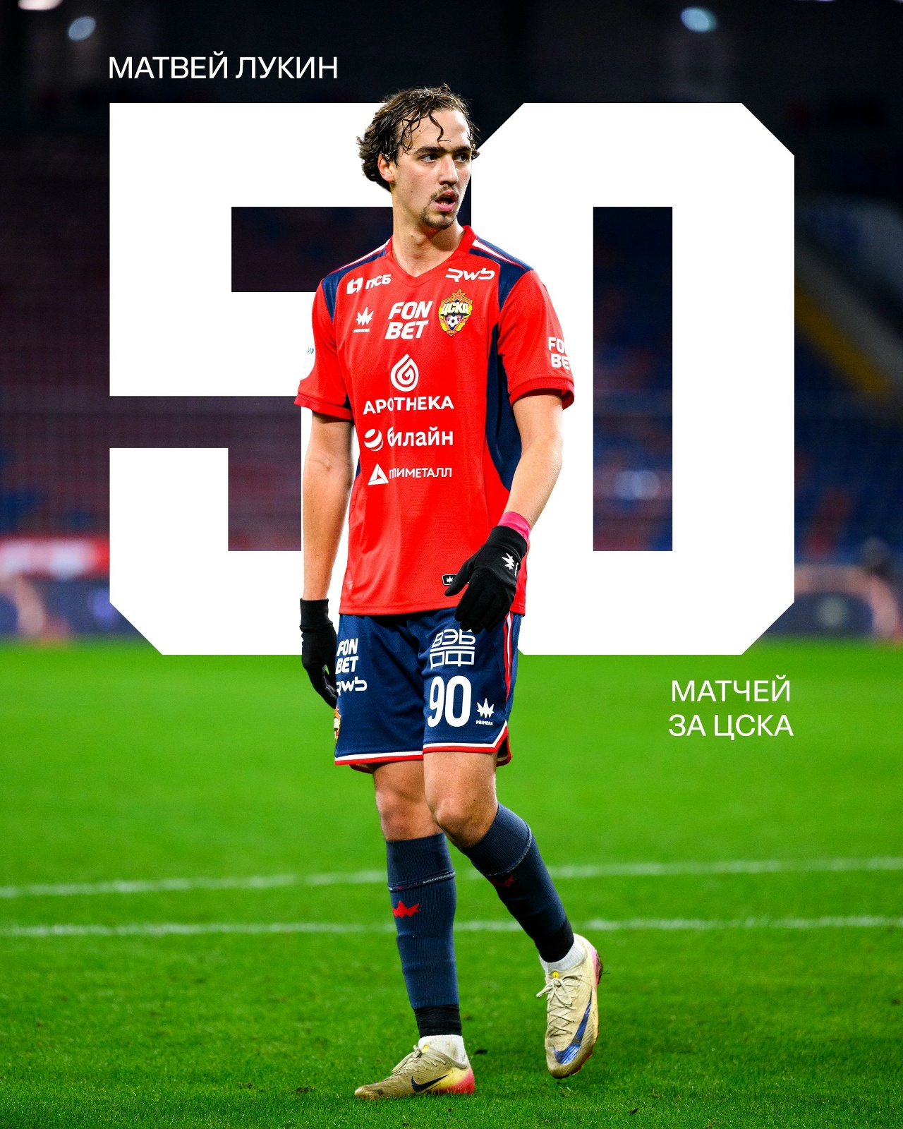 Матвей Лукин провел 50 матчей за ПФК ЦСКА!