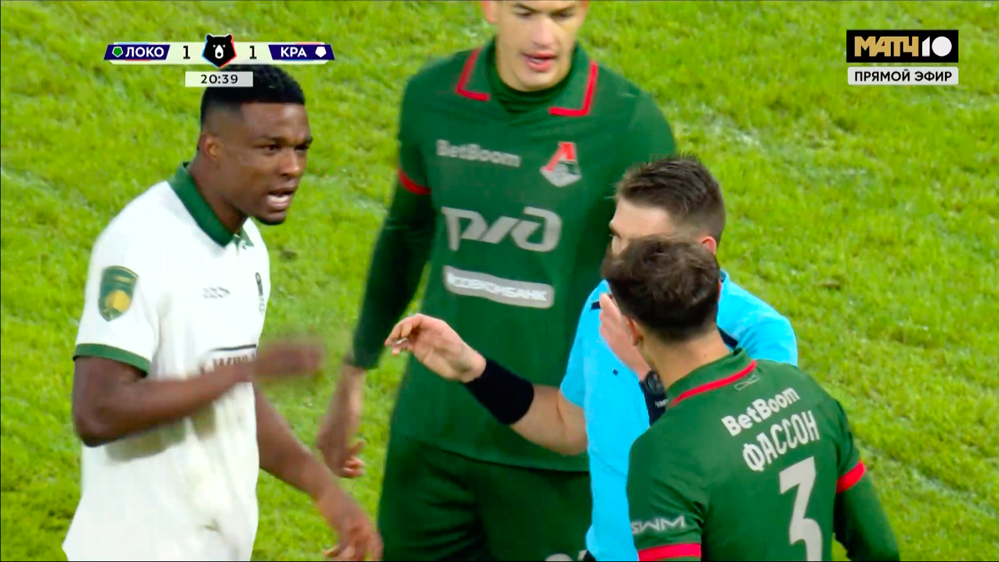 В начале второго тайма «Локо» претендовал на пенальти: Николай Комличенко получил по ноге от Джованни, упал в штрафной «Краснодара» – но ВАР посчитал, что это не пенальти.