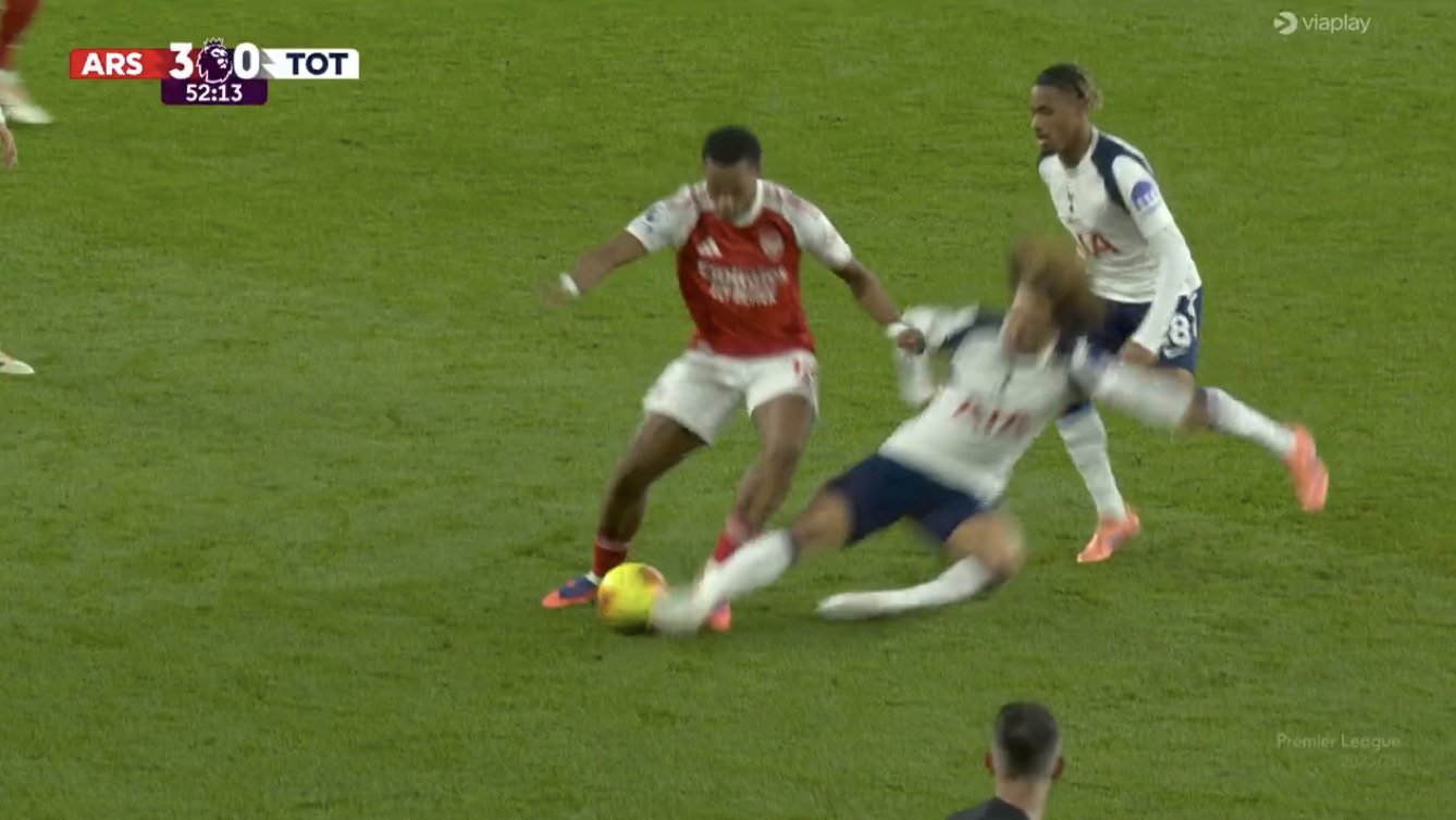 В концовке матча на газоне оказался уже сам голландец – его уложил Райс, повернулся и что-то выговорил лежачему игроку «Тоттенхэма». Еще и прошелся коленом по голове соперника.