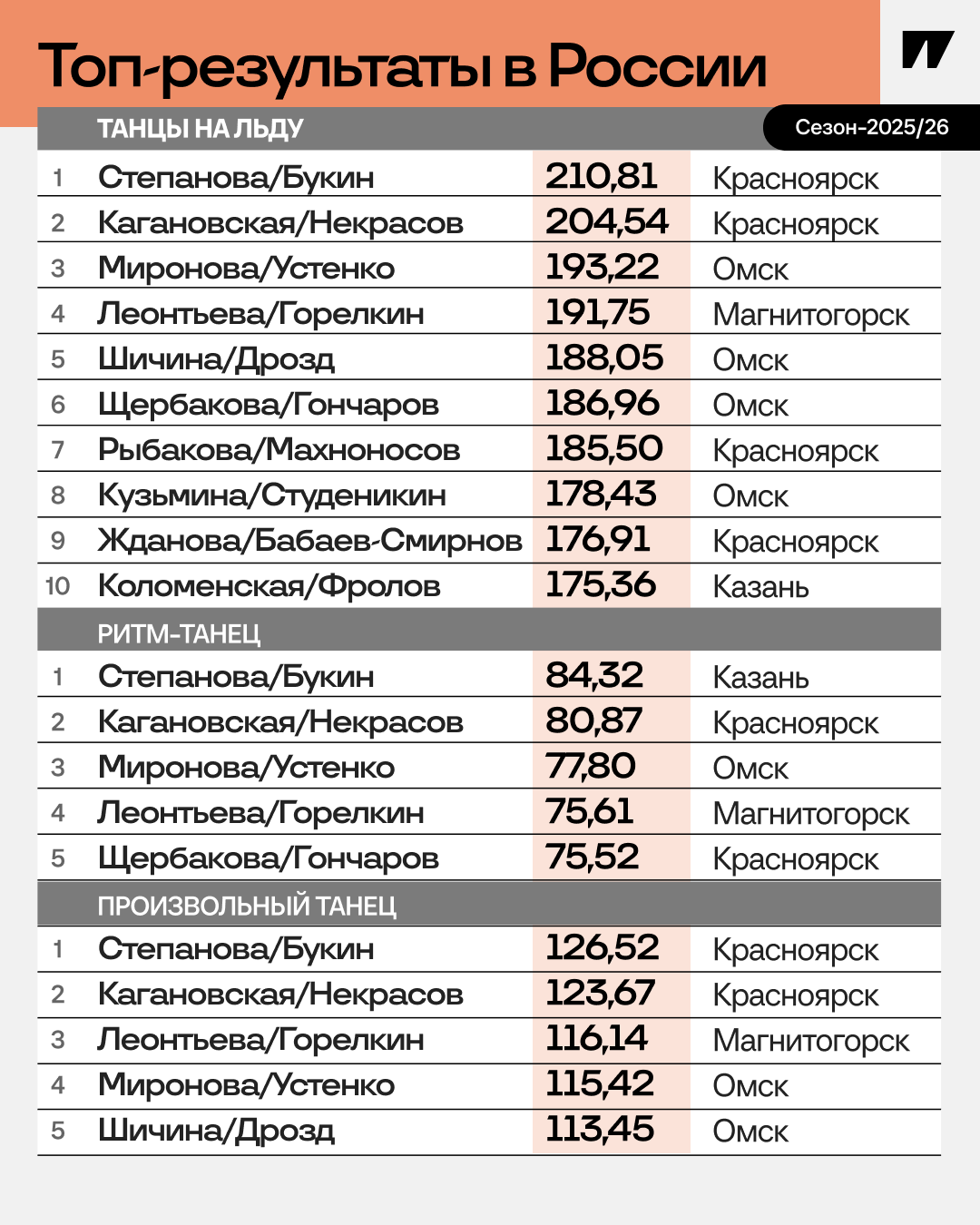 ● Александра Бойкова и Дмитрий Козловский – впервые за долгие годы абсолютные лидеры сезона. Только у них две победы на этапах, лучшие суммы, а главное – спокойствие и равновесие внутри пары.