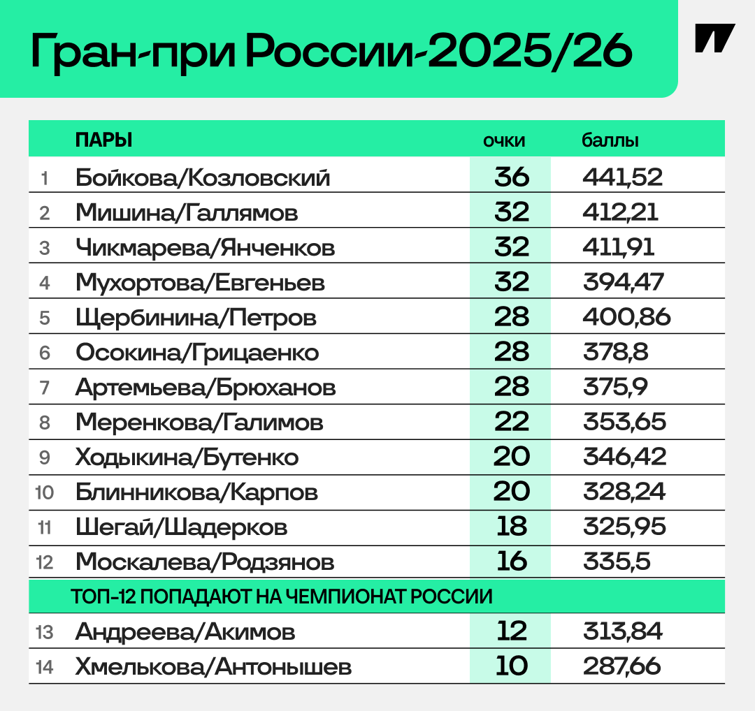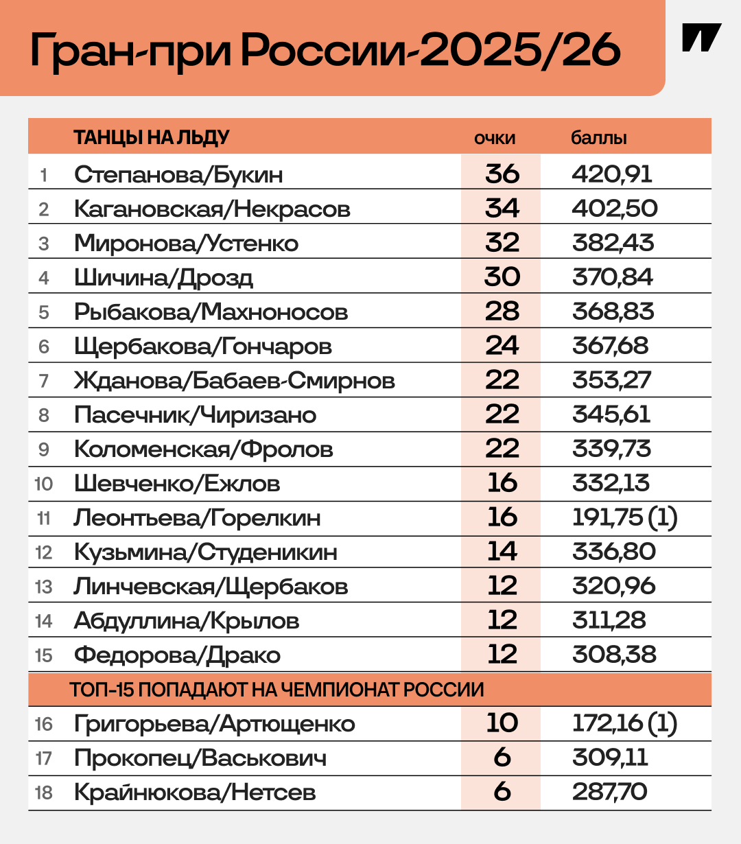 ● У Кадыровой с Мироновым и Хабибуллиной с Княжуком, не выступавших на этапах, как и у Акатьевой, остается лазейка на чемпионат России через решение исполкома и списки основной сборной. Но вопрос их готовности и здоровья на первом месте.