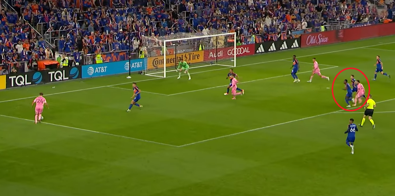Поначалу «Цинциннати» был активнее и создал пару моментов, но на 19-й минуте пропустил от Месси. Молодой аргентинский вингер Матео Сильветти получил пас от Лео и навесил ему на голову.