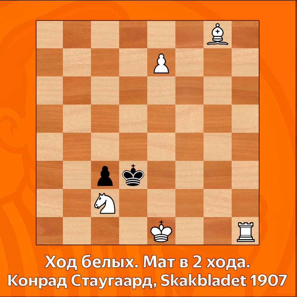 Первая задачка на вертикальный мат была опубликована Конрадом Стаугаардом в журнале «Skakbladet» (1907).