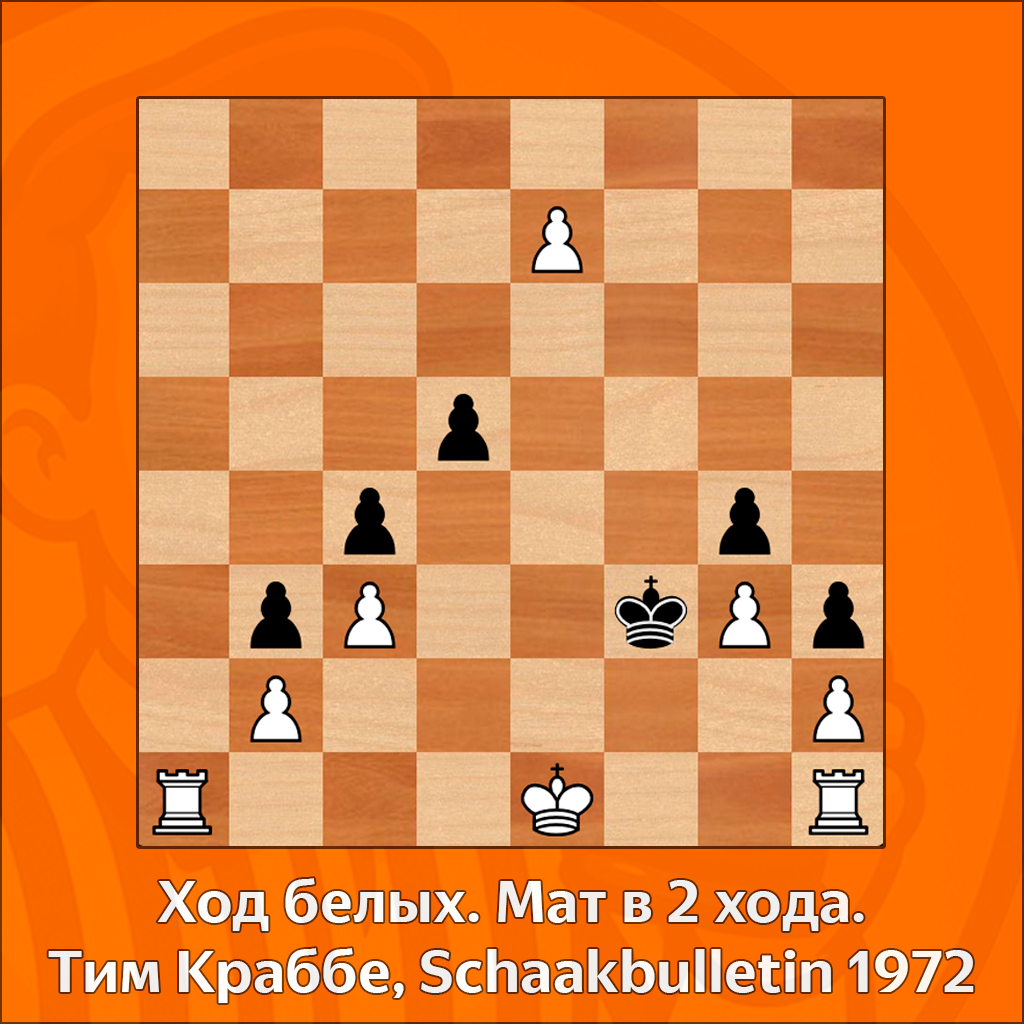 Одна из самых известных задач на данную тему — мат в 2 хода от Тима Краббе из журнала «Schaakbulletin» (1972).