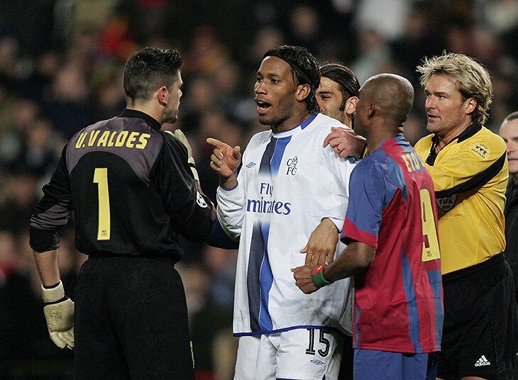 Фрэнк Лэмпард в своей книге вспоминал: «Дрогба уже был немного заведен ужимками Маркеса и Пуйоля – больших и сильных парней, которые валились от порыва ветра и выпрашивали для него желтую карточку. А теперь уже их вратарь стал изображать мучения после безобидной борьбы за мяч. Игроки «Барсы» окружили арбитра Андерса Фриска, и Диди, конечно, был удален».
