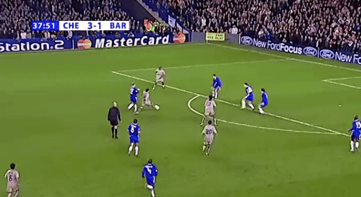 «Челси» ошеломил «Барсу» тремя голами за 20 минут: Эйдур Гудьонсен забил на восьмой, Фрэнк Лэмпард – на 17-й, Дэмьен Дафф – на 19-й. Три быстрые атаки – и 3:0 за половину первого тайма! Даже без Дрогба.