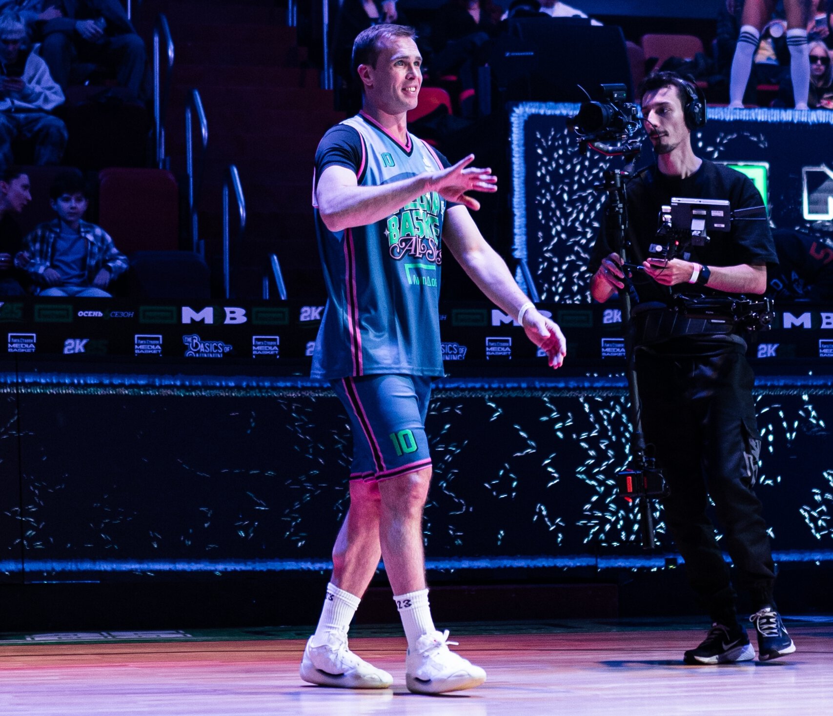 Карена Макарена. Блогер (1,89 млн на ютубе) стал фронтменом MDK. Не только поддерживал команду с бровки, но и выходил на паркет.