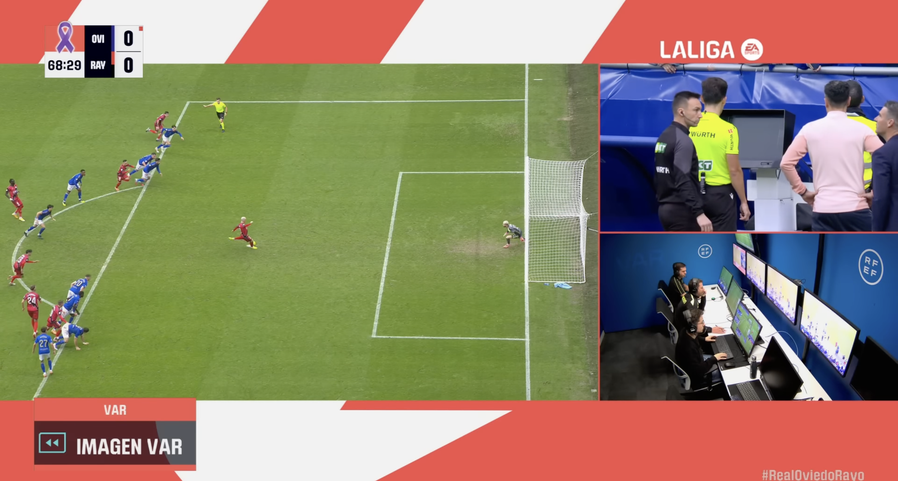«Овьедо» выстоял дома против «Райо Вальекано» (0:0). Аарон Эскандель отразил пенальти от Иси Паласона, но его могли перебить из-за необычного эпизода: просматривали на ВАР на предмет возможного фальстарта игрока «Овьедо»: прямо перед ударом Паласона Феде Виньяс оказался в штрафной на четвереньках, потом он же выбил мяч в аут. А оказался он в таком положении из-за… толчка от футболиста «Райо» – в нужный момент тот буквально вытолкнул Виньяса со своей позиции, но уругваец устоял и оставил ноги на линии, это в итоге уберегло от нового удара.