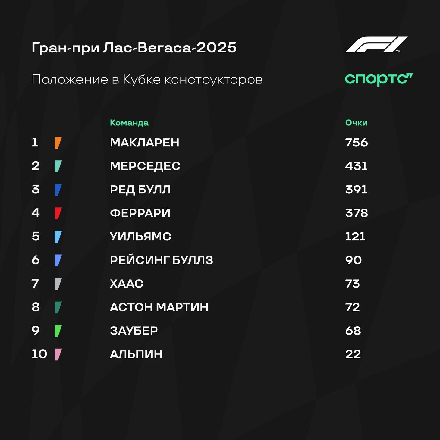 ● Гран-при Катара (спринт): Норрис (396), Ферстаппен (374).