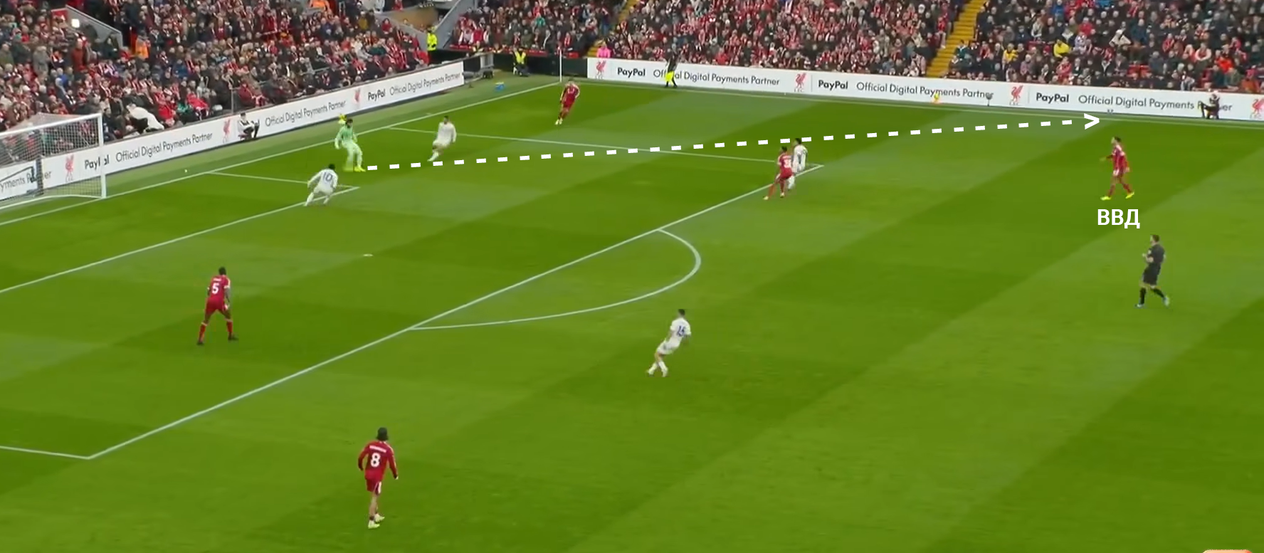 На последнем скрине Алисон отдаст пас в аут. А ведь Ван Дейк вполне мог отскочить либо к бровке, либо наоборот к центру