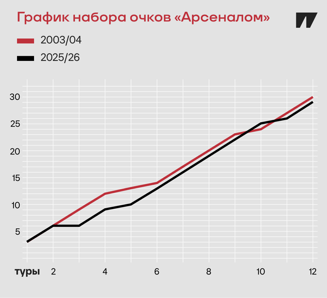 Может, «Арсенал» и уступает «Непобедимым» после первых 12 туров, но команда Артеты совершенно точно идет по сезону в чемпионском графике.