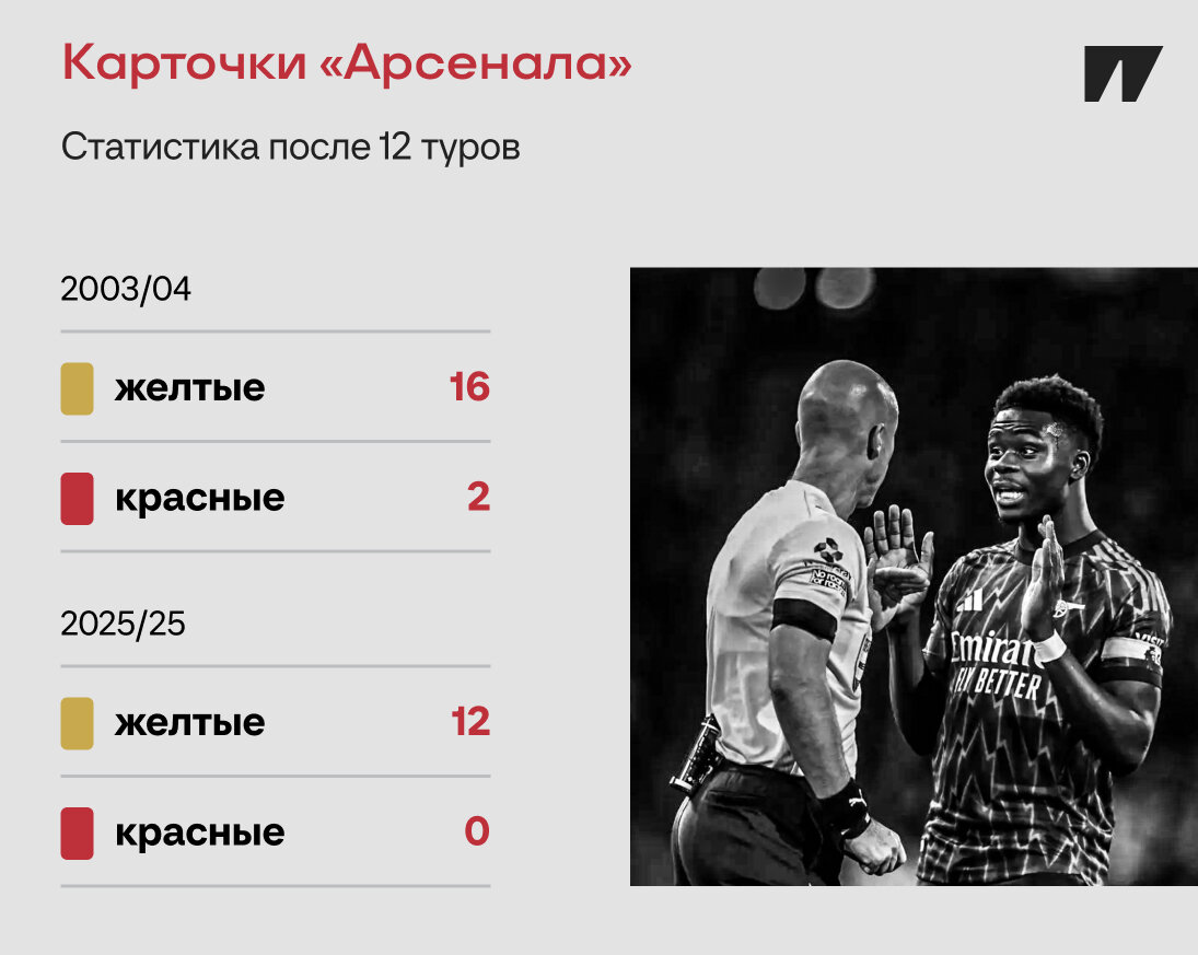 «Непобедимые» стали одной из самых грубых команд сезона-2003/04, а ведь это была другая эпоха. Уже в первых турах по удалению получили Сол Кэмпбелл и Патрик Виейра (всего же за сезон три красных). Желтых карточек тоже хватало.