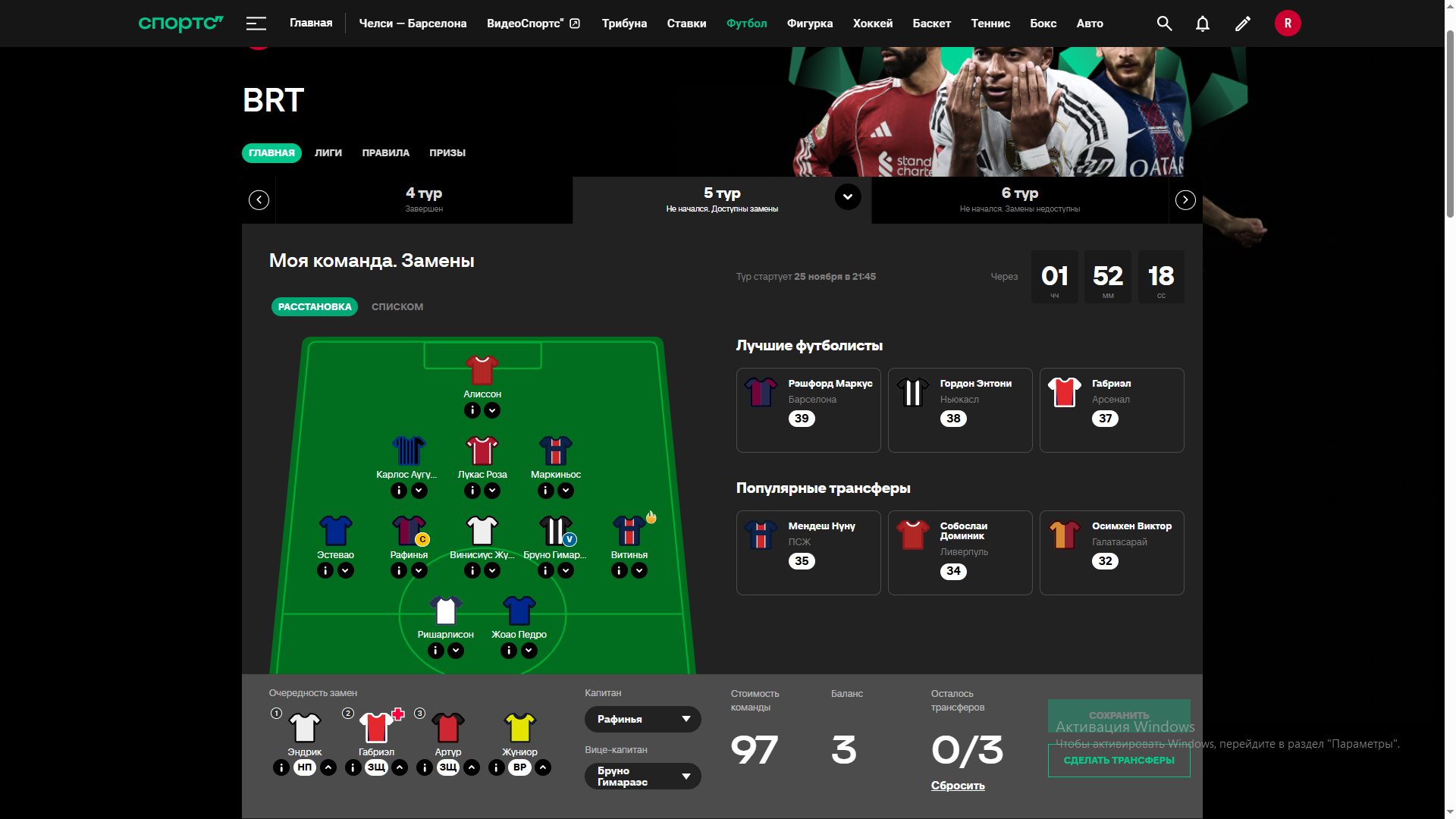 Привет, поклонники Лиги Чемпионов! Очень быстро об изменениях в моей «бразильской сборной» ЛЧ для нового тура. «Топы» поправляются, поэтому появилась возможность вернуть в ворота Беккера, выпустить в оборону Карлоса Аугусто и Рафинью в полузащиту. Посмотрим, поможет ли такая «мощная трансферая кампания» команде. Очки снова потрачены не все.