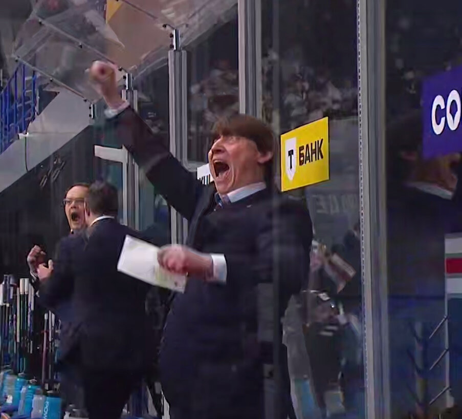 Сразу после того самого гола Белозерова тренер выдал какие-то чудесные эмоции. Он кричал, бегал по скамейке.