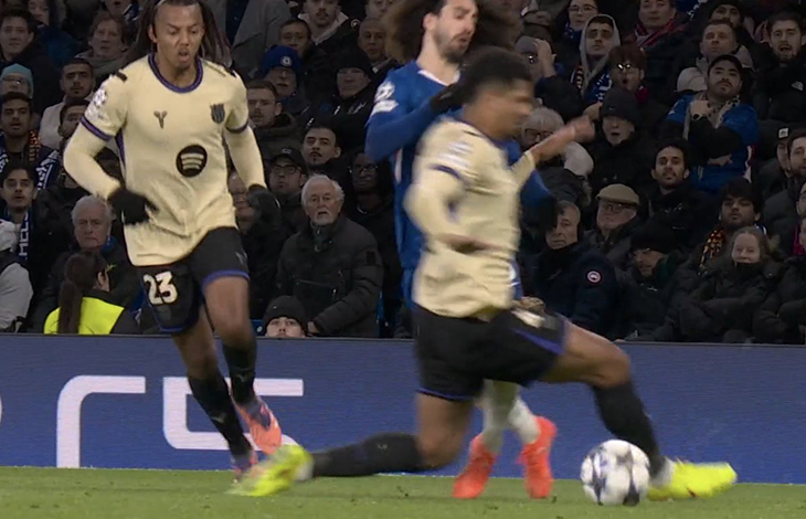 С атакующей тройкой активно подключался и Энцо Фернандес. Аргентинец находил в штрафной свободные зоны раз за разом: Эрик Гарсия и Френки де Йонг не опускались за Энцо, это регулярно давало «Челси» преимущество в штрафной. Итог: опасный прострел на Мало Гюсто (спас подкат Бальде, он прервал передачу) и два отмененных гола.