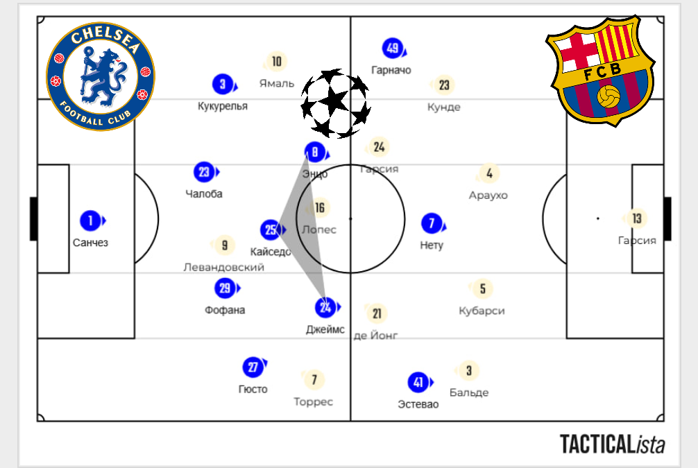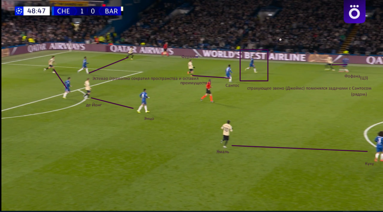 Несмотря на более важные выступления нескольких игроков, не поворачивается язык выделить их отдельно – круто выступала вся команда в абсолютно разных фазах игры. Кукурелья выключил Ямаля в важных для «Челси» переходных фазах при давлении, Кайседо стал главным инструментом при организации вариаций (90% выигранных единоборств против Ламина).